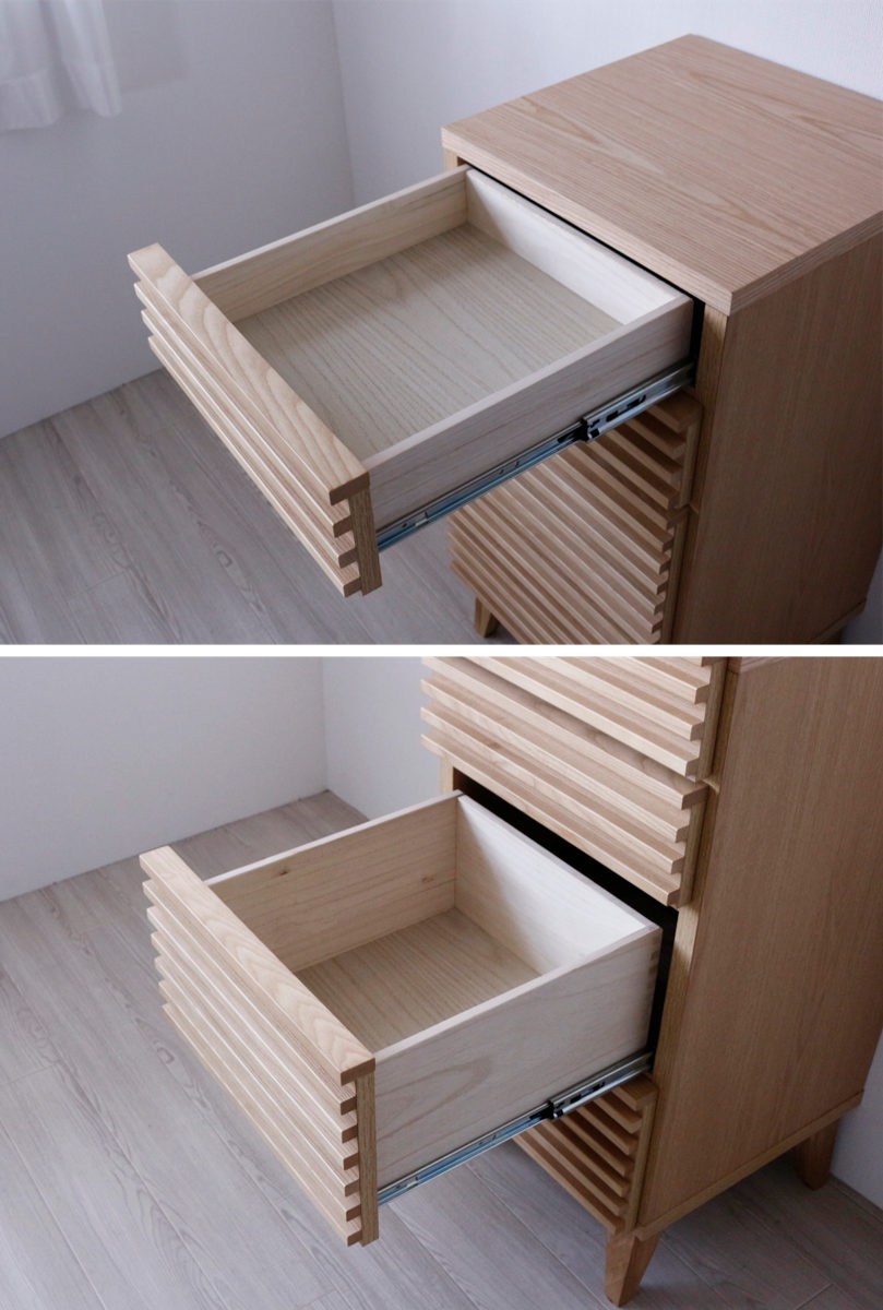 伝統的なロッキング加工という技法が施された引出しは、耐久性に優れており長くお使いいただけます。引出し内部には上質な桐材が使用されているので、湿気に強く腐りにくい、変形しにくい、虫を寄せ付けないなどの特長があります。