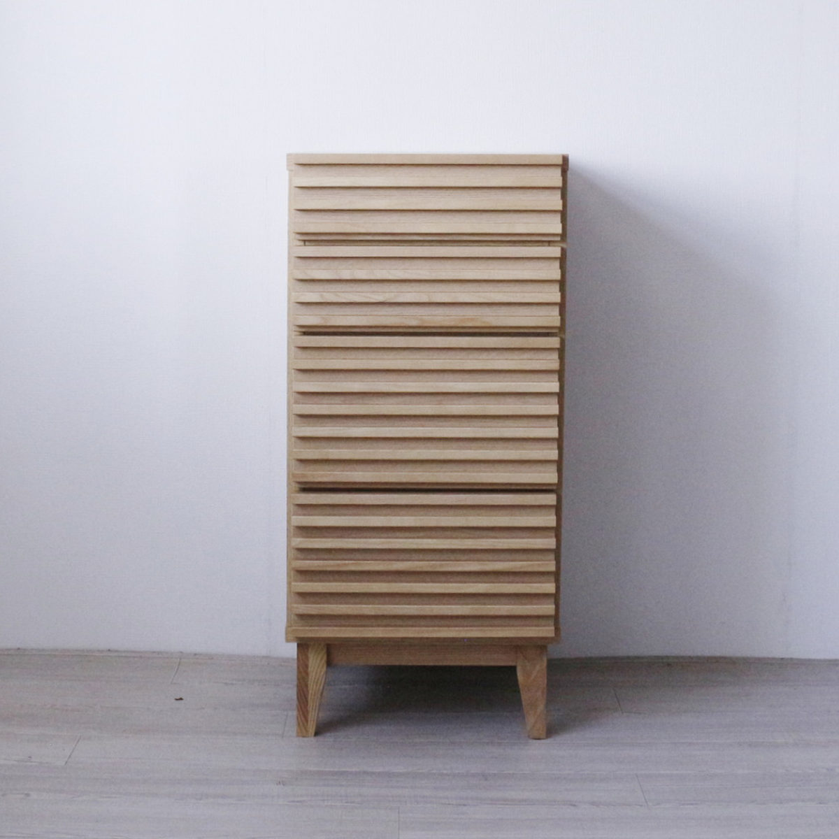 | 材質 | 天板、前板 : 突板(天然木工芸突板) ルーバー、脚: アッシュ無垢 |