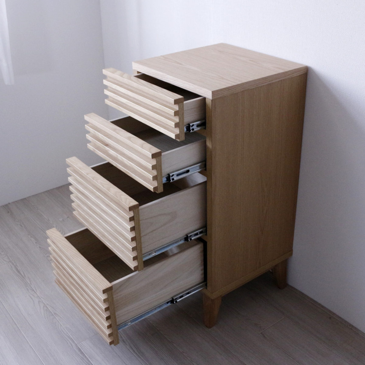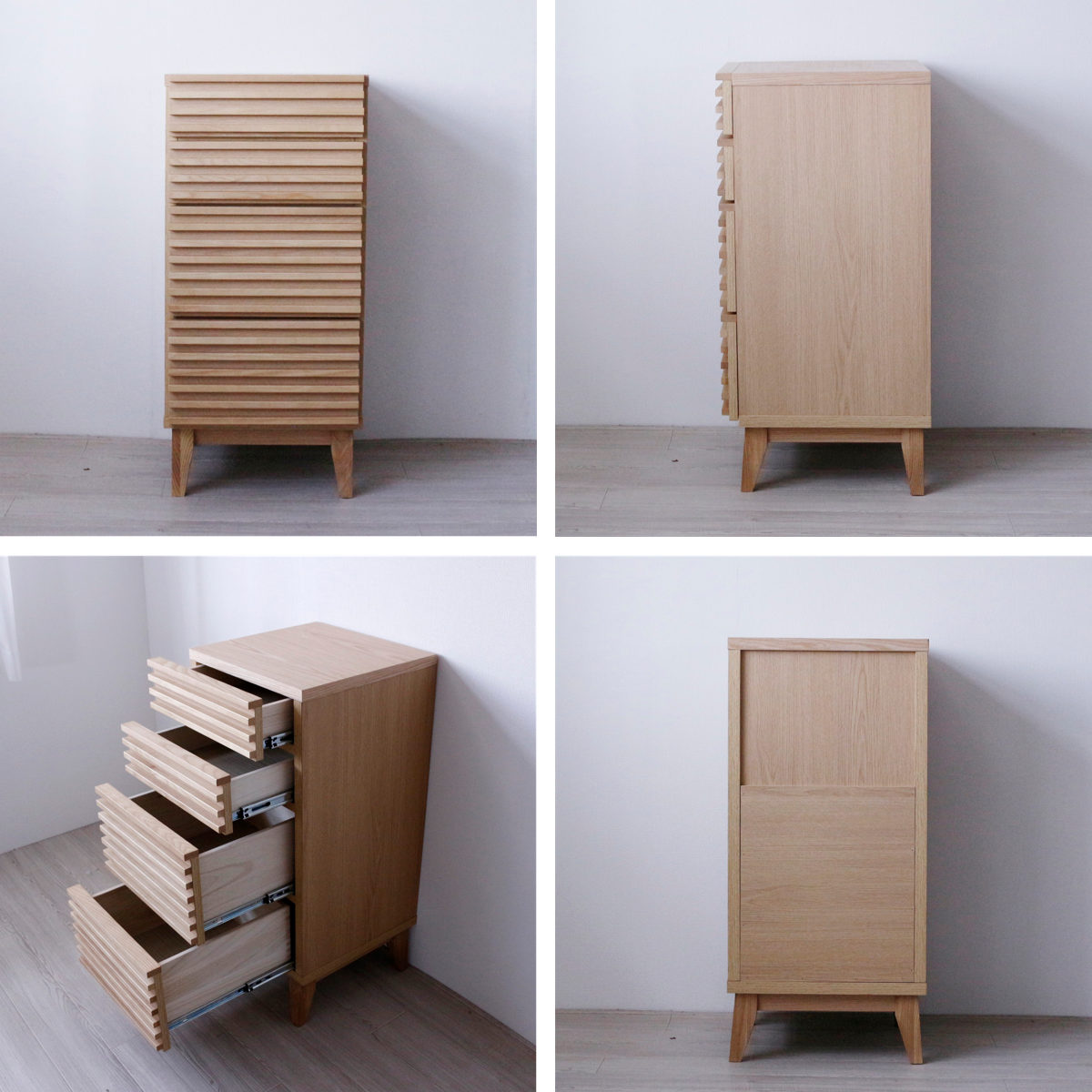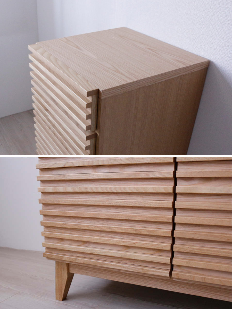 - 天板、前板 : 突板(天然木工芸突板) ルーバー、脚: アッシュ無垢