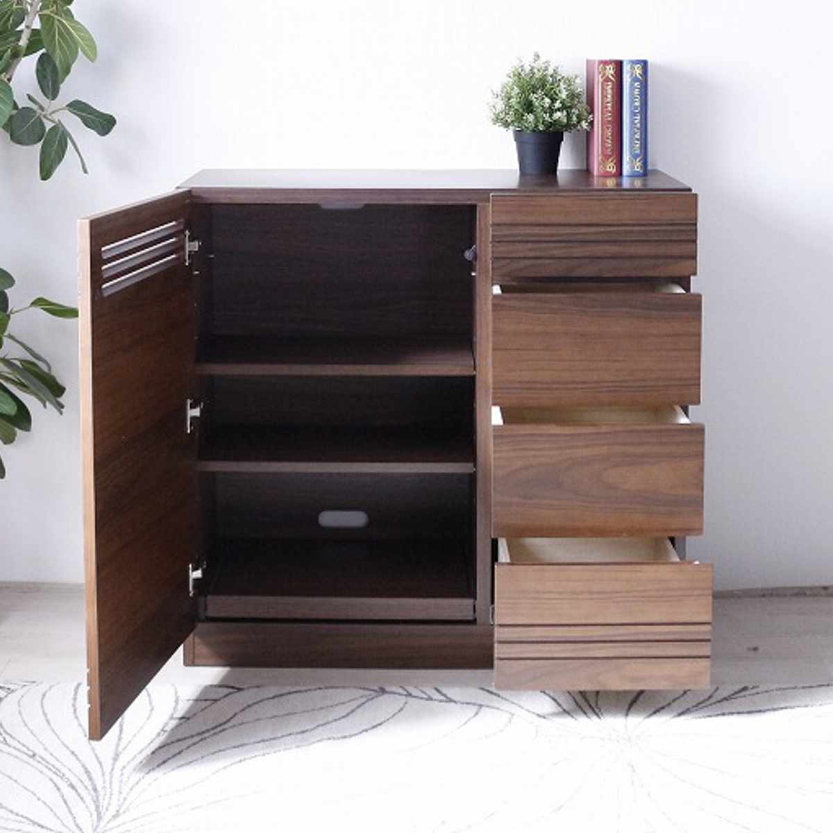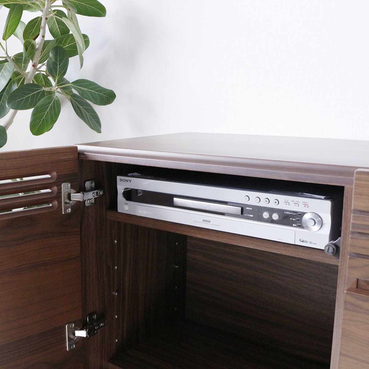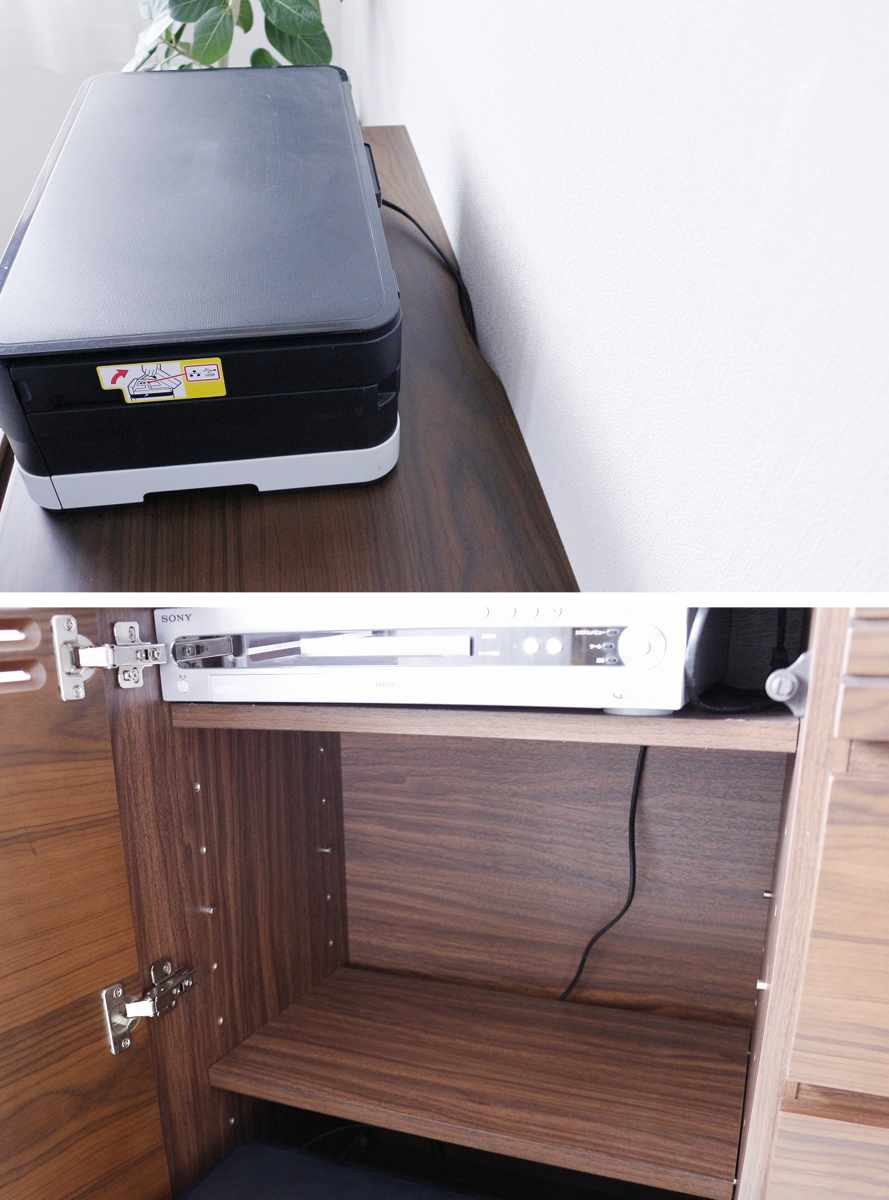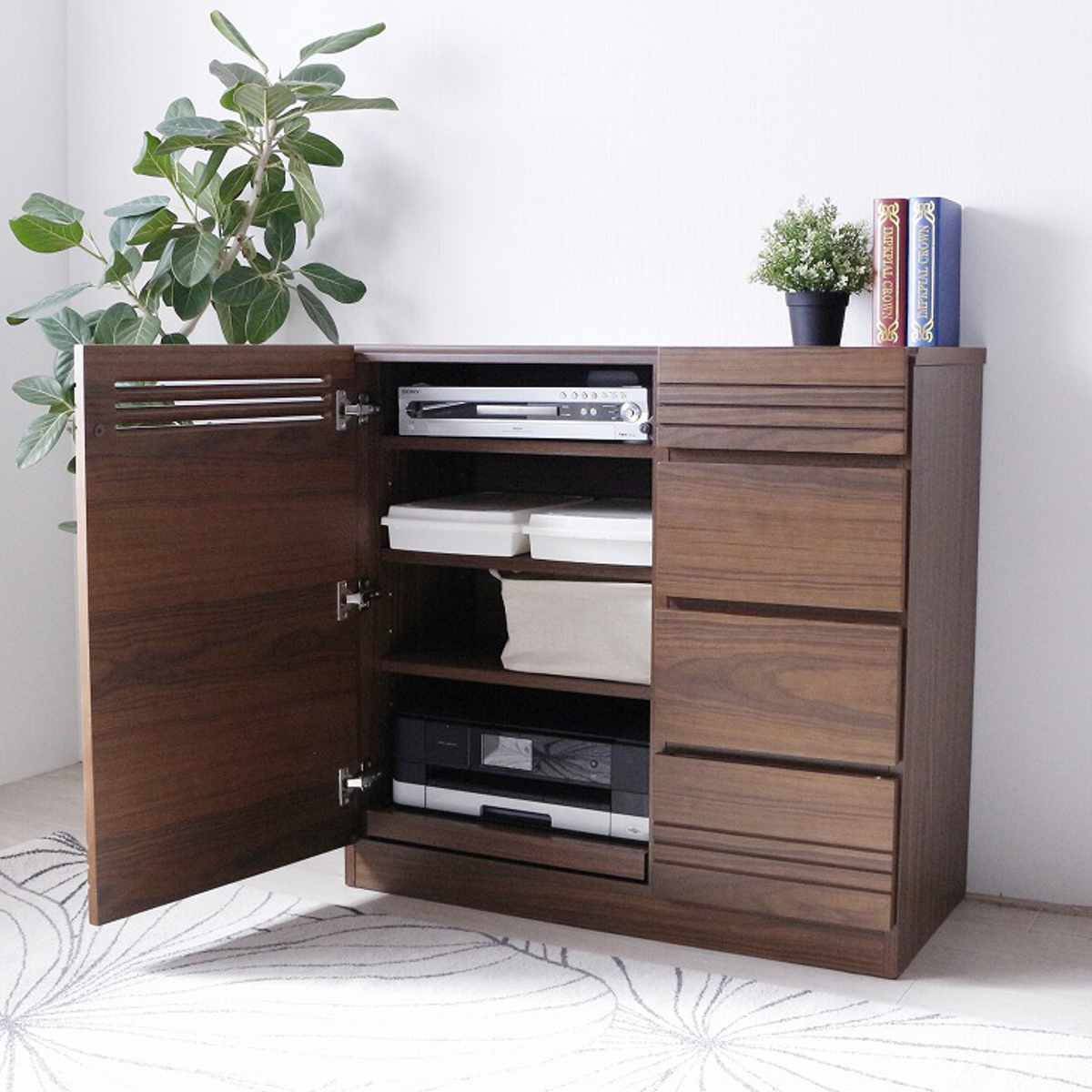 AV機器や本、書類などをたっぷり収納でき、寝室やダイニングではハイタイプのテレビ台としても活躍します。左扉上部にはリモコン操作に対応した通気穴を設けているため、デッキ類の収納にも便利です。