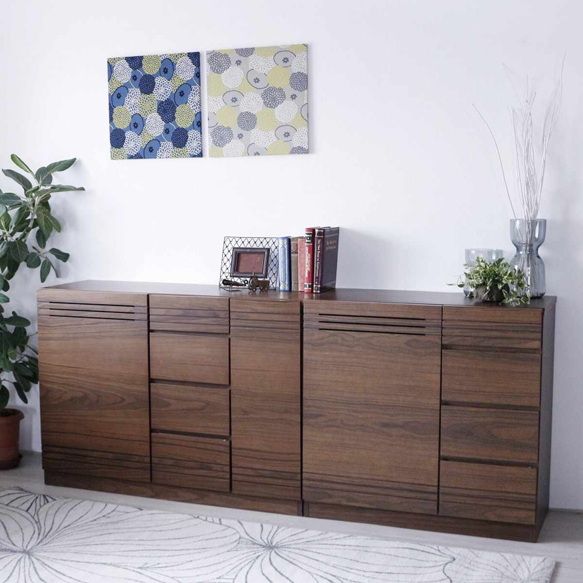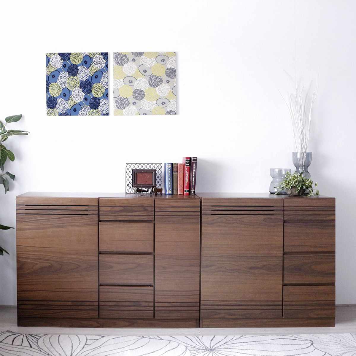 空間に上質な存在感を与えるサイドボードです。前面は木目を揃えることで、思わず触れたくなる心地よい肌触りに。日常の中にワンランク上の洗練された空間を演出します。