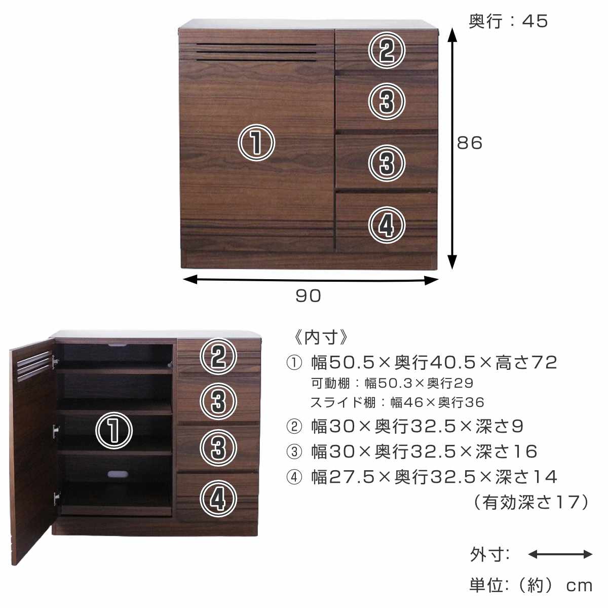 ![]() コンパクトな サイドボード 幅90cm 【▲このページの商品】 | ![]() 大容量収納 サイドボード 幅120cm |