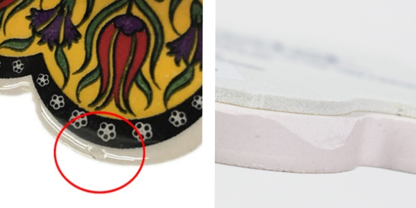 全て手作業で焼き付けを行うため、花形の一部に焼き付けの跡が残り、塗装の欠けができることがございます。脇、フチ部分での塗装の欠けは良品扱いになります。※上記理由による、返品・交換はお受けできません。ご了承の上お買い求め下さいますようお願い致します。