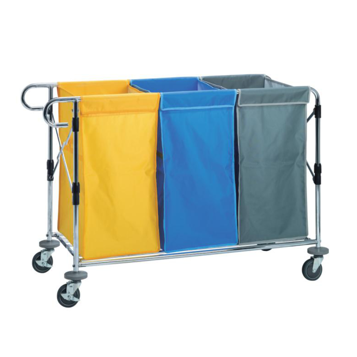 折りたたみ式のシステムカートで分別や回収がスムーズにできる