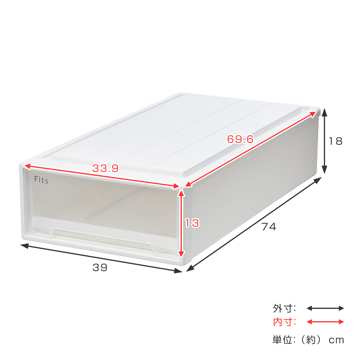 | サイズ | 約 幅39×奥行74×高さ18(cm) 引出内寸:約 幅33.9×奥行69.6×高さ13(cm) |