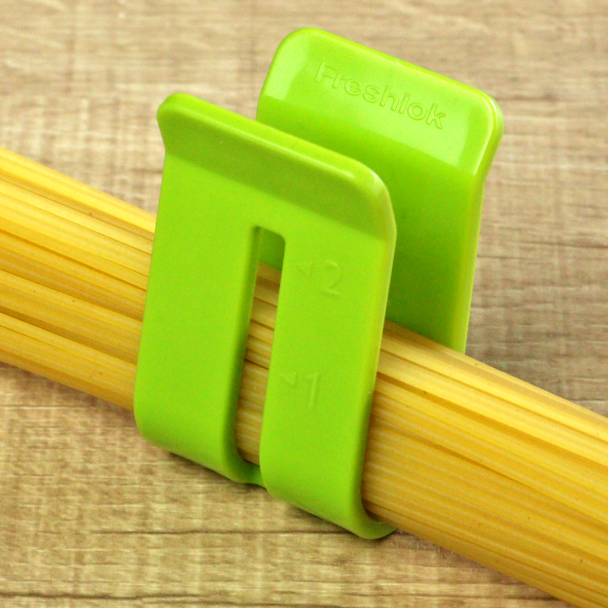 簡単に分量が計れるパスタメジャー付きです。1食分(100g)ごとの目盛り付きで、一度に2食分まで計ることができます。