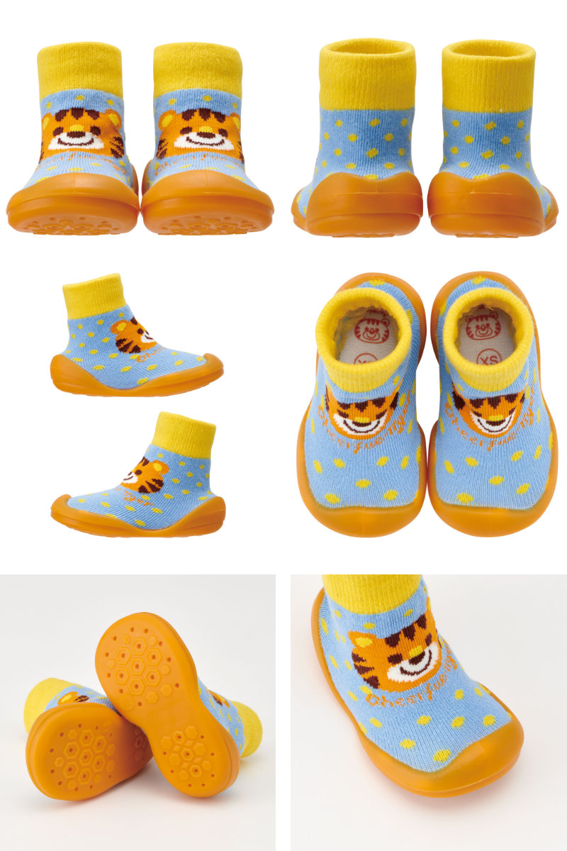 ●シューズの上部は靴下のように柔らかく伸縮性があり、赤ちゃんの足に優しくフィットします。