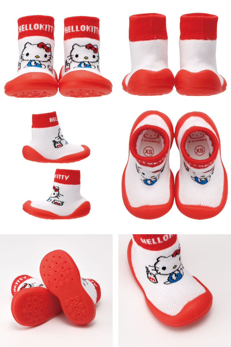 ●シューズの上部は靴下のように柔らかく伸縮性があり、赤ちゃんの足に優しくフィットします。