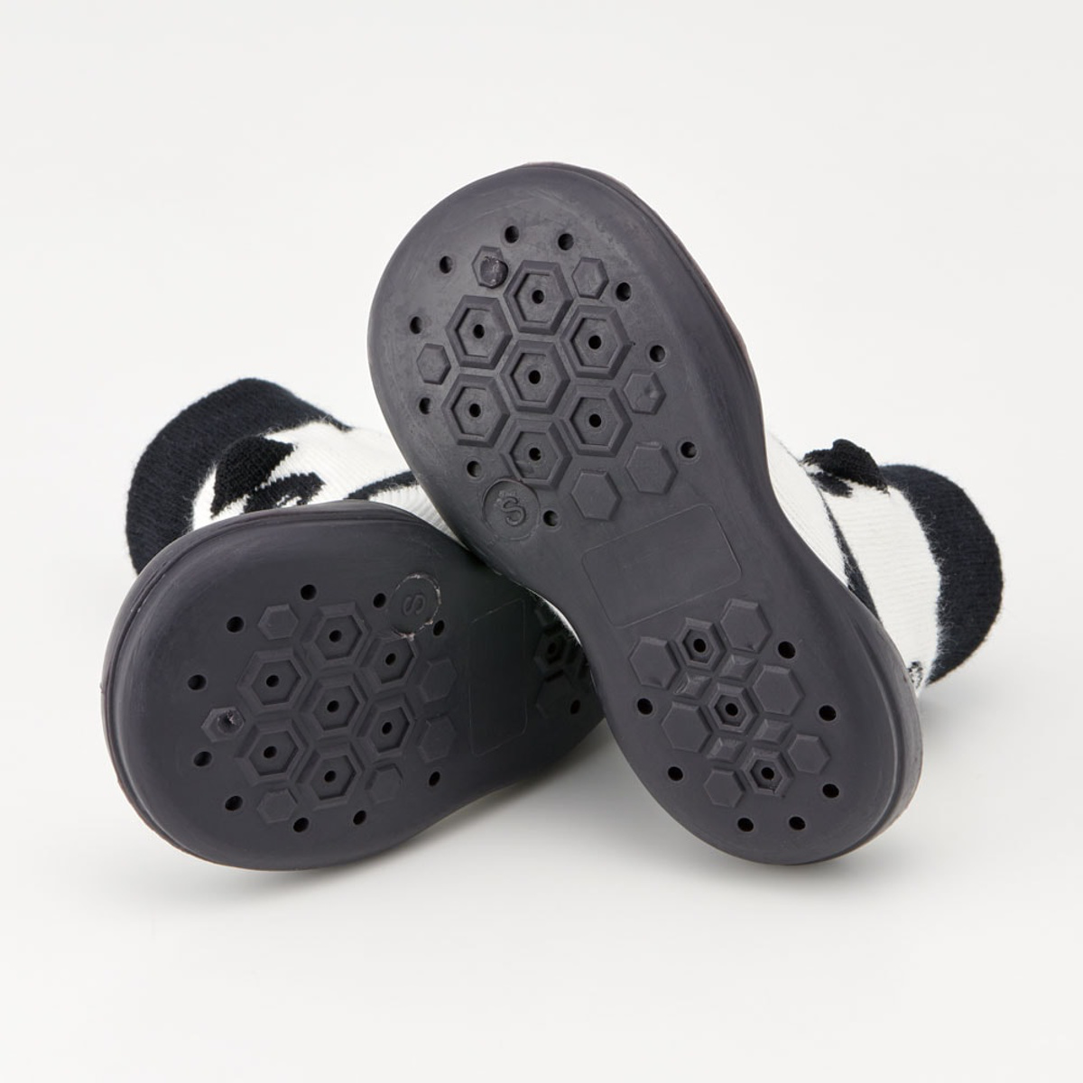 ●シューズの上部は靴下のように柔らかく伸縮性があり、赤ちゃんの足に優しくフィットします。