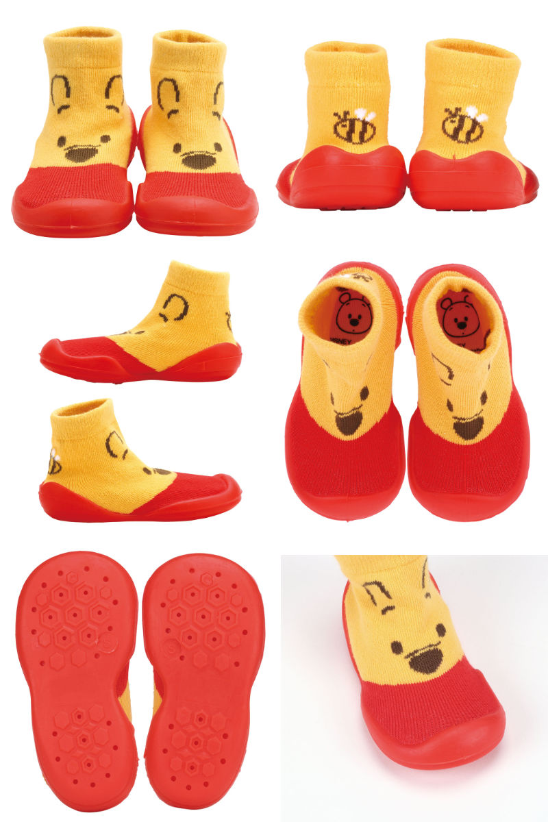 ●シューズの上部は靴下のように柔らかく伸縮性があり、赤ちゃんの足に優しくフィットします。