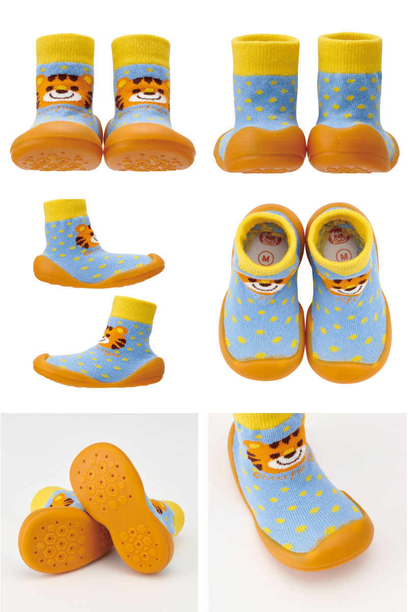 ●シューズの上部は靴下のように柔らかく伸縮性があり、赤ちゃんの足に優しくフィットします。