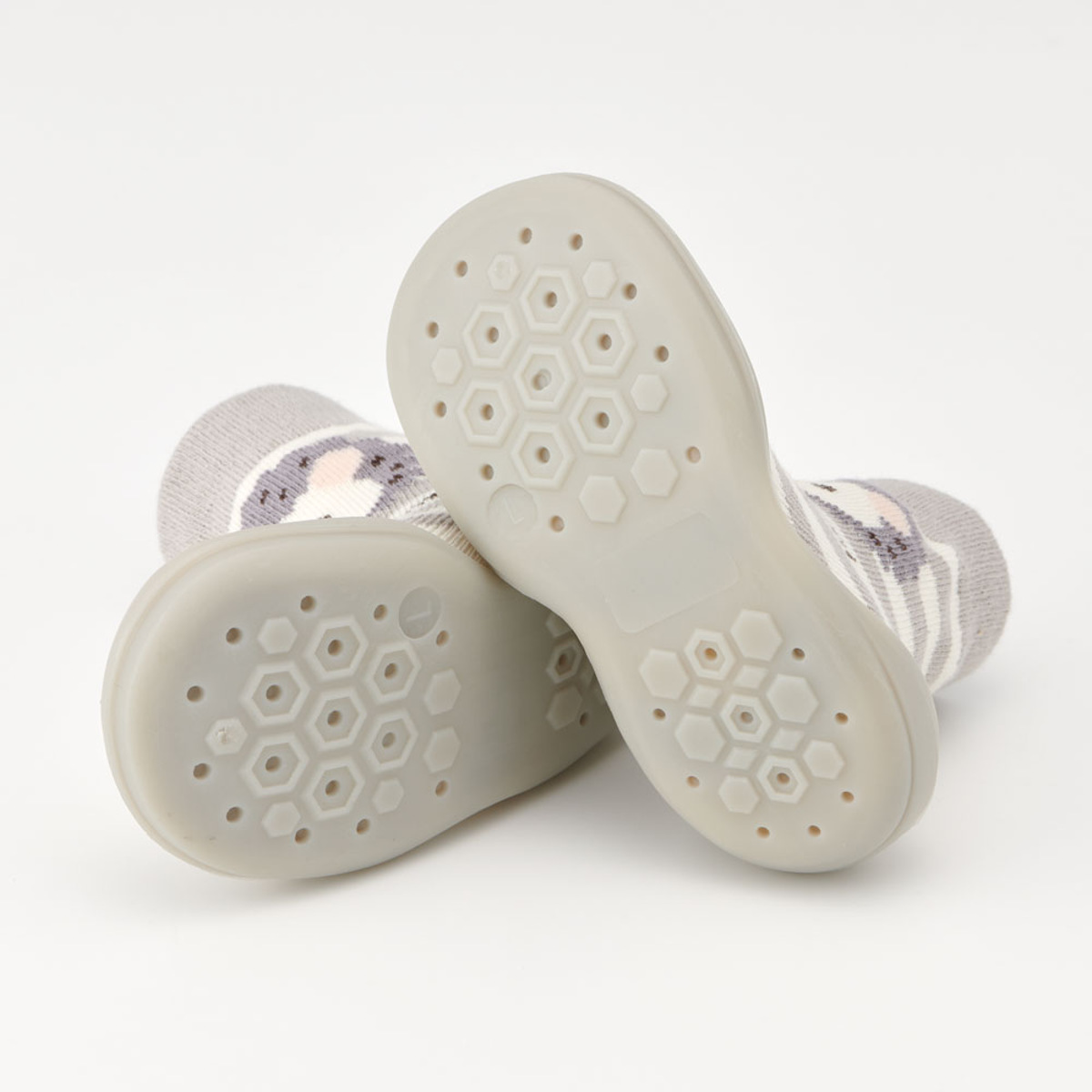 ソールは滑りにくいTPE素材を使用しているので安心です。フローリングの室内で滑る心配がありません。しっかりとした靴底が赤ちゃんの足を保護するため、外履きとしてもお使いいただけます。