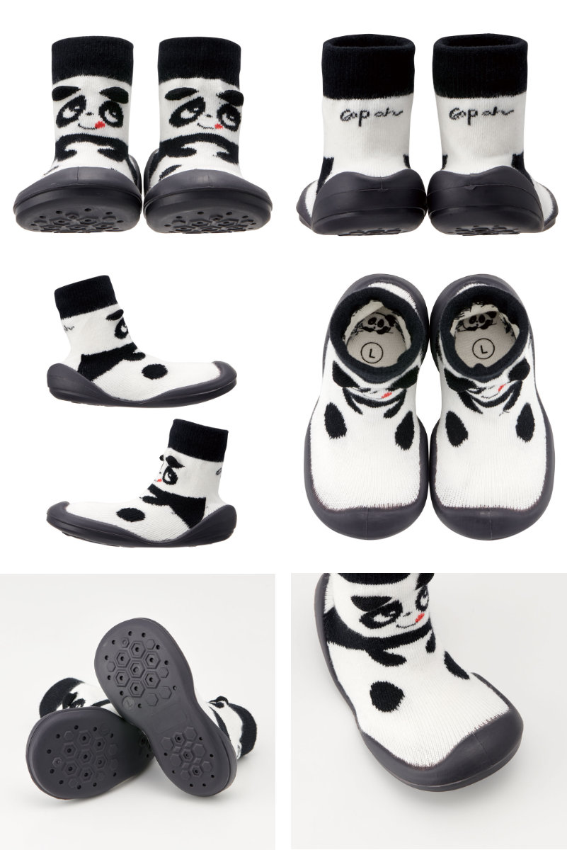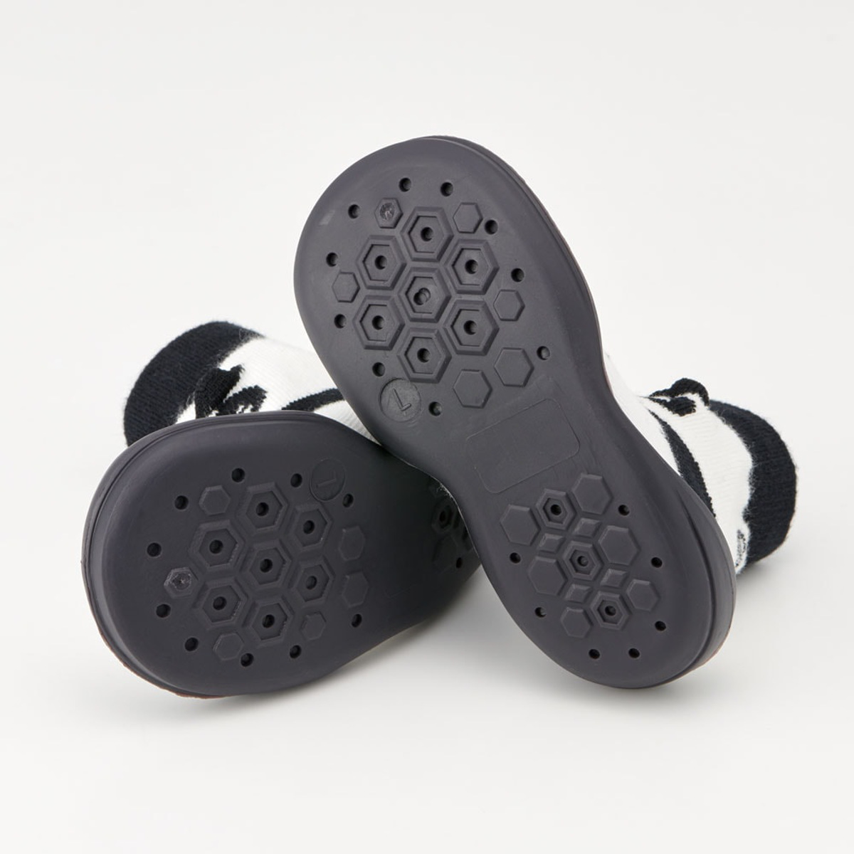 ●シューズの上部は靴下のように柔らかく伸縮性があり、赤ちゃんの足に優しくフィットします。