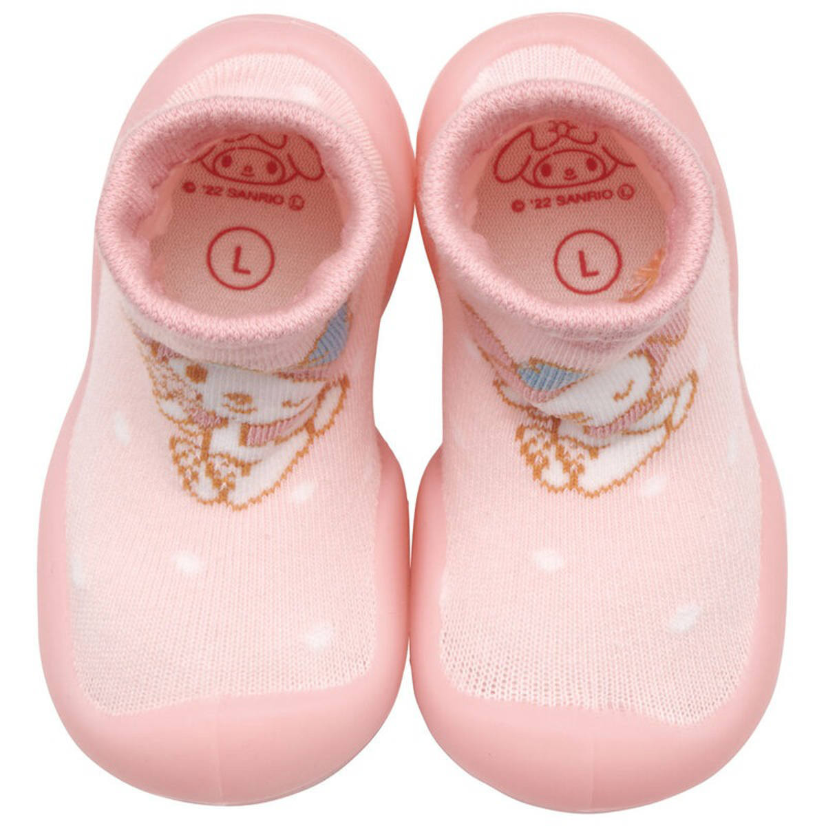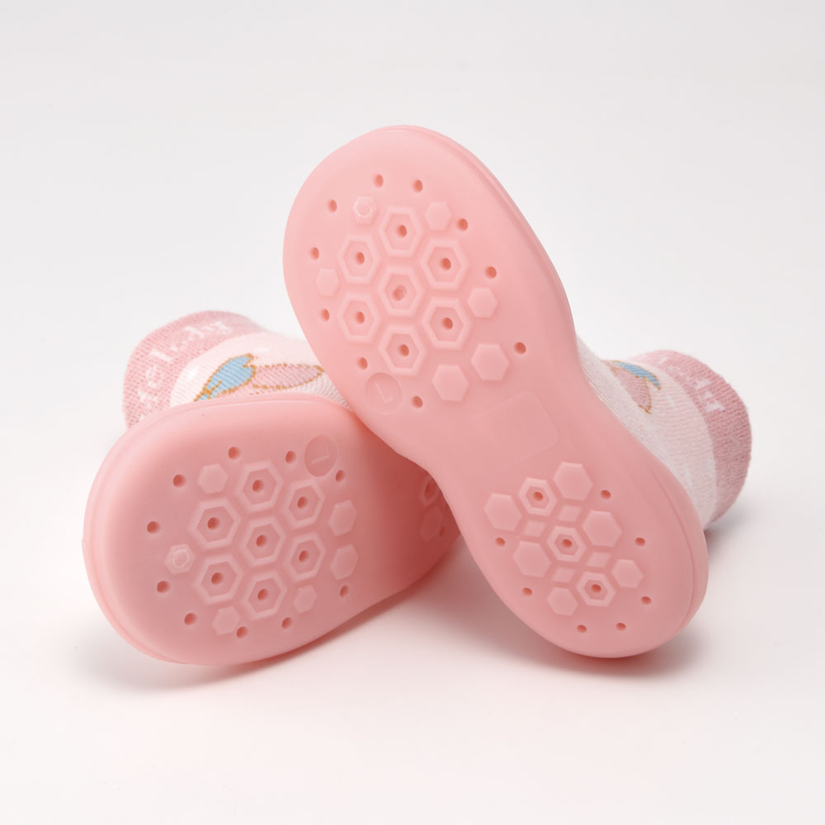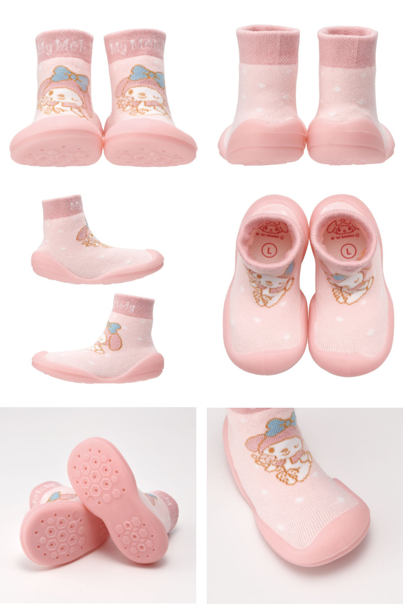 ●シューズの上部は靴下のように柔らかく伸縮性があり、赤ちゃんの足に優しくフィットします。
