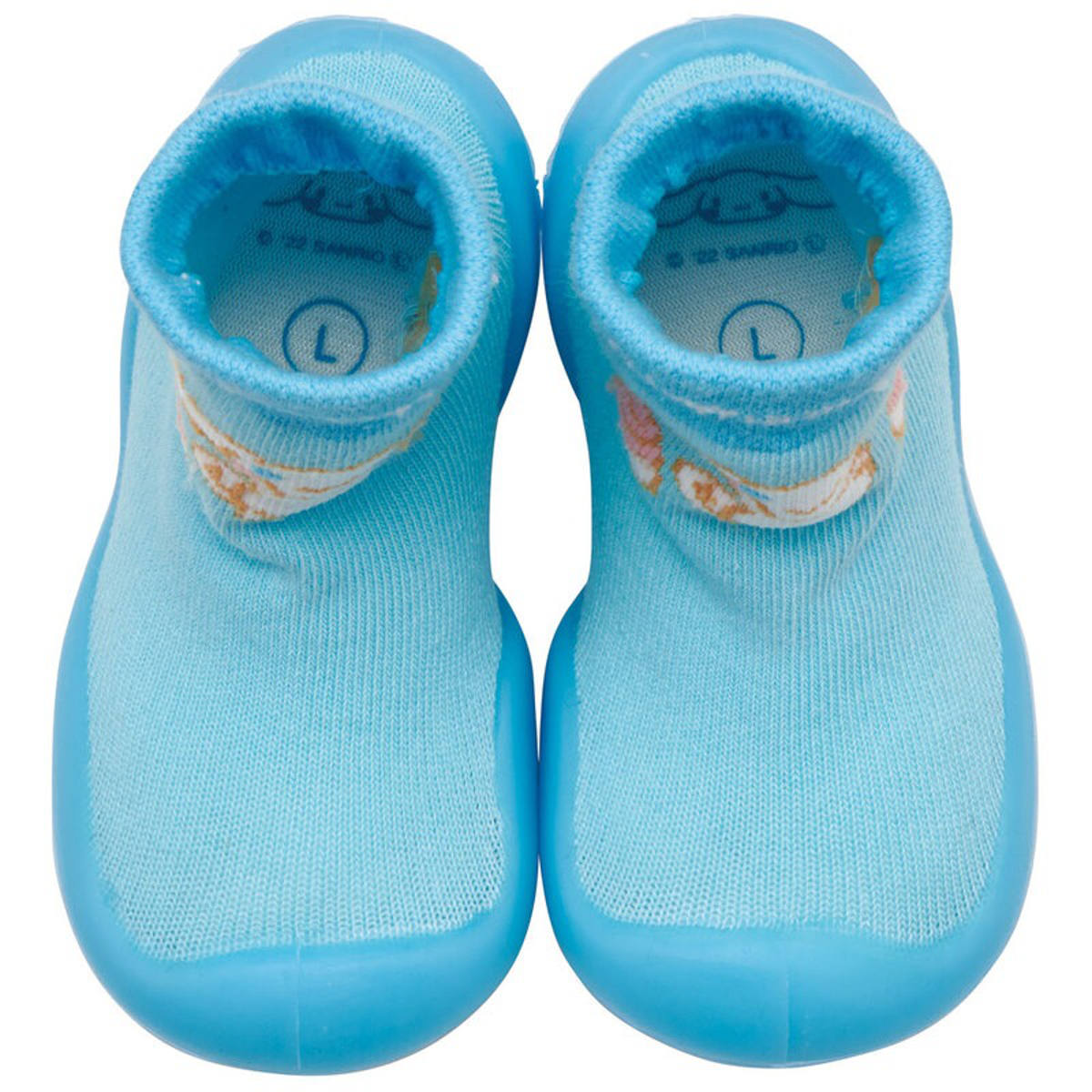 よちよち歩きの赤ちゃんの足にぴったりのベビーシューズです。シューズの上部は靴下のように柔らかく伸縮性があり、赤ちゃんの足に優しくフィットします。靴下素材で伸びるため、履かせやすく脱げにくいので、いつの間にか脱げてしまったということもありません。室内履きやファーストシューズにぴったりです。