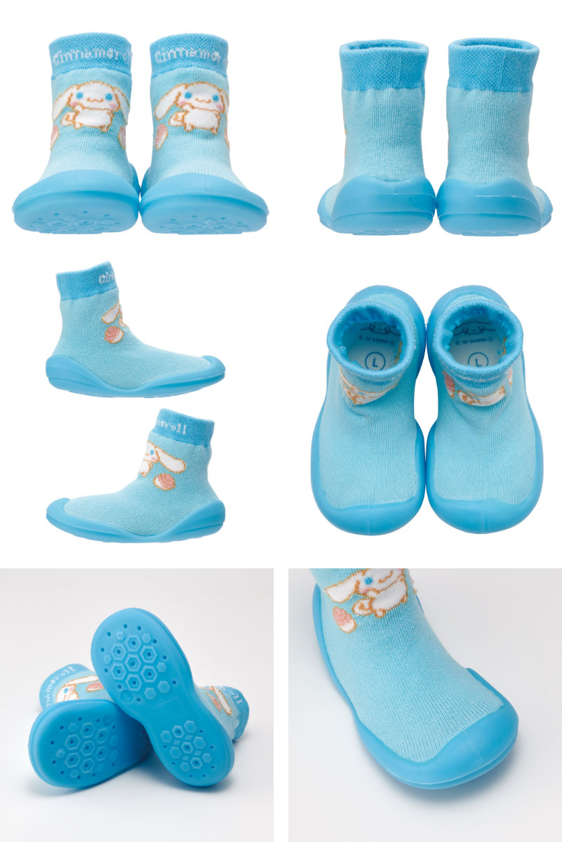 ●シューズの上部は靴下のように柔らかく伸縮性があり、赤ちゃんの足に優しくフィットします。