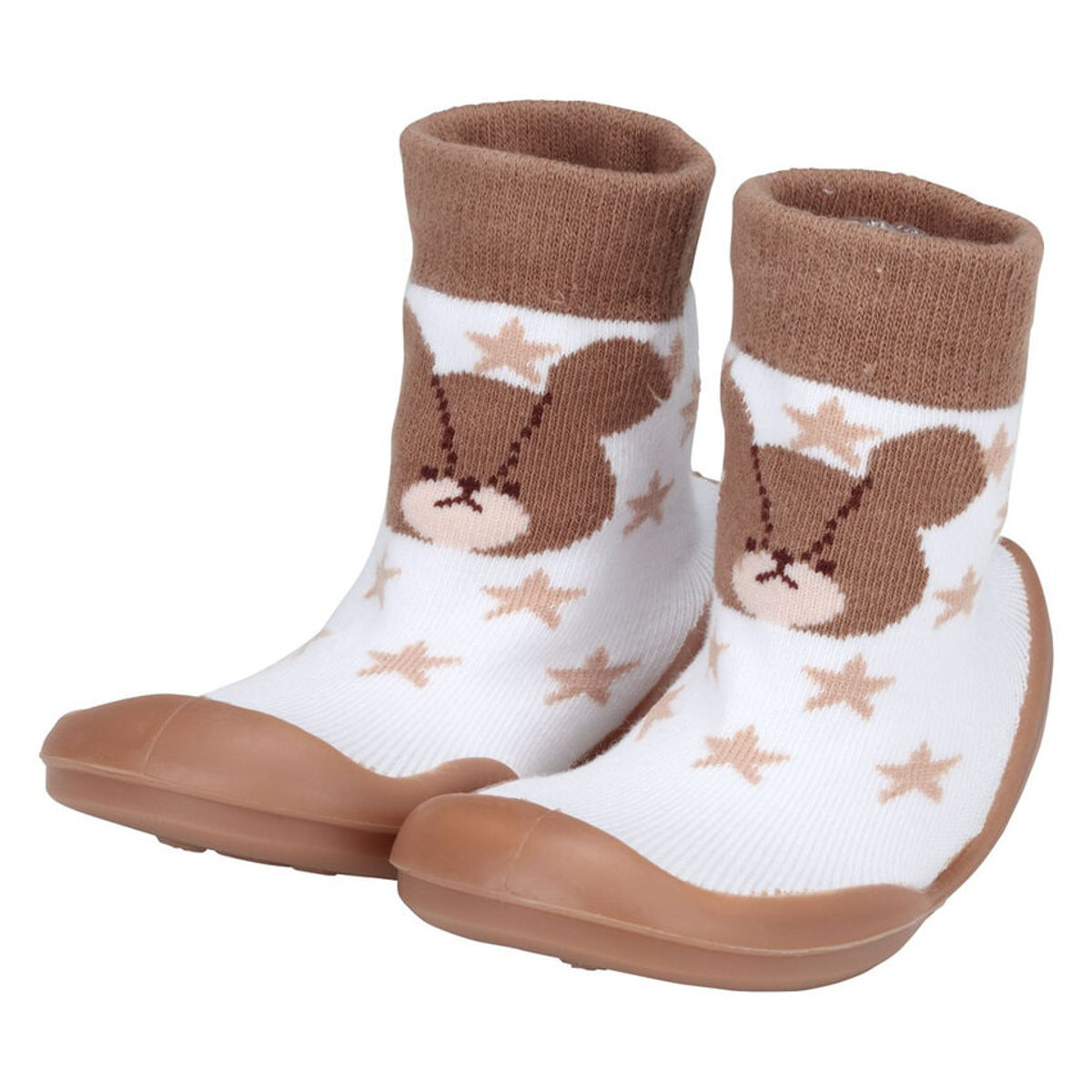 ソールは滑りにくいTPE素材を使用しているので安心です。フローリングの室内で滑る心配がありません。しっかりとした靴底が赤ちゃんの足を保護するため、外履きとしてもお使いいただけます。