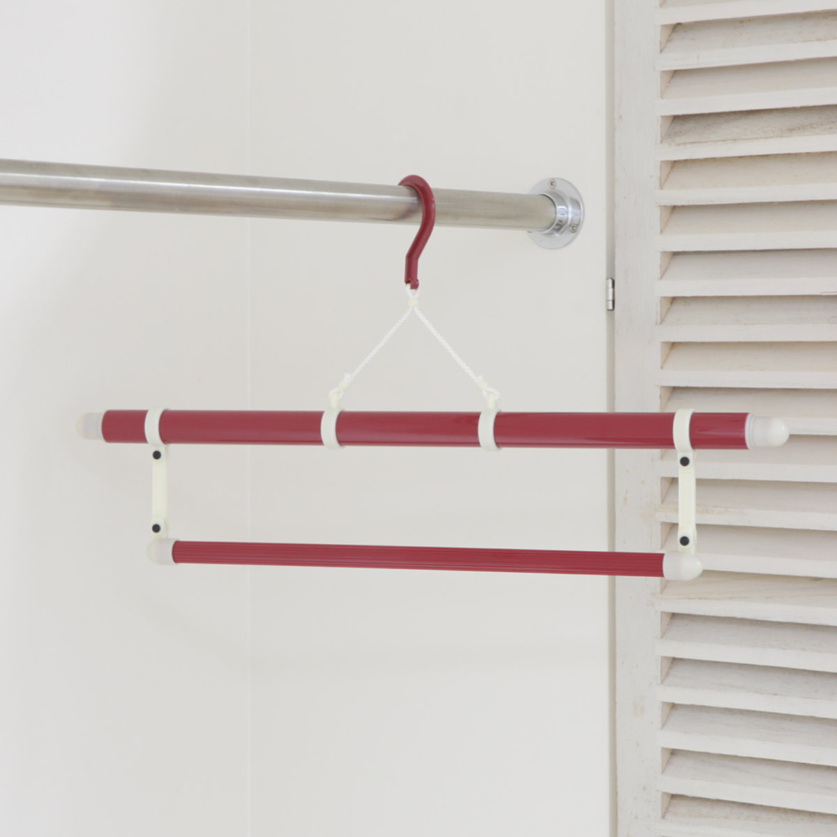 ハンガーを使用しない時は縮めてコンパクトに収納していただけます。小さくなるので持ち運びも簡単です。