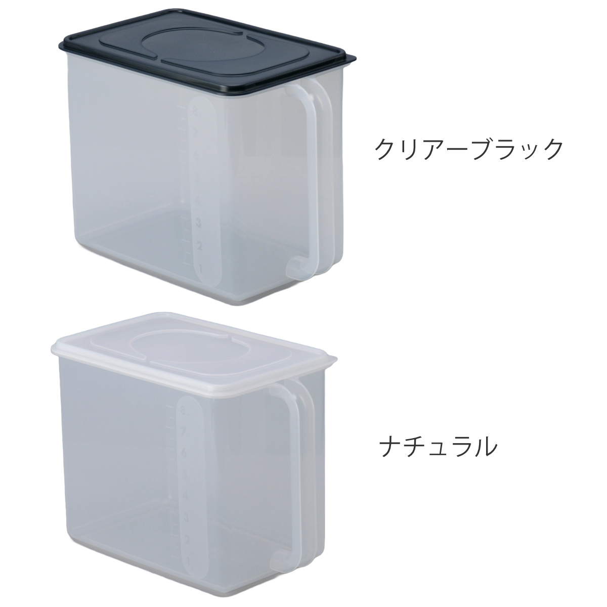 本体には目盛りが記載されているので、食品のストック以外にも液体類や粉類、お米などをそのまま入れてお使いいただけます。残量を一目で確認できるので、買い忘れ防止にもなります。