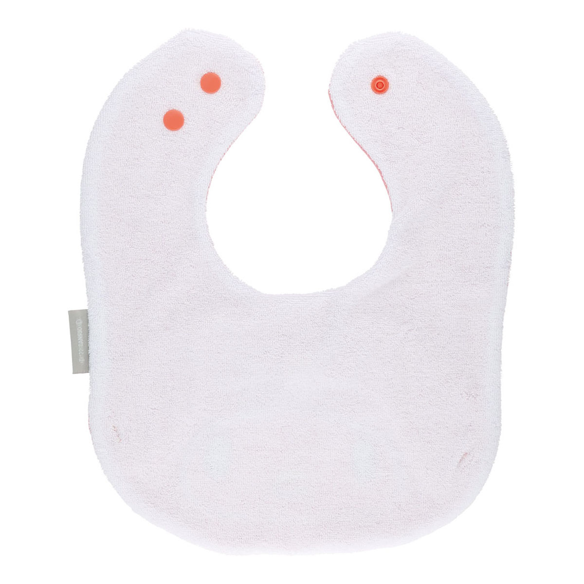 キャラクターをモチーフにしたデザインのベビービブです。可愛いキャラクターが赤ちゃんにそっと寄り添い、よだれや食べこぼし、飲みこぼしから衣類を守ります。