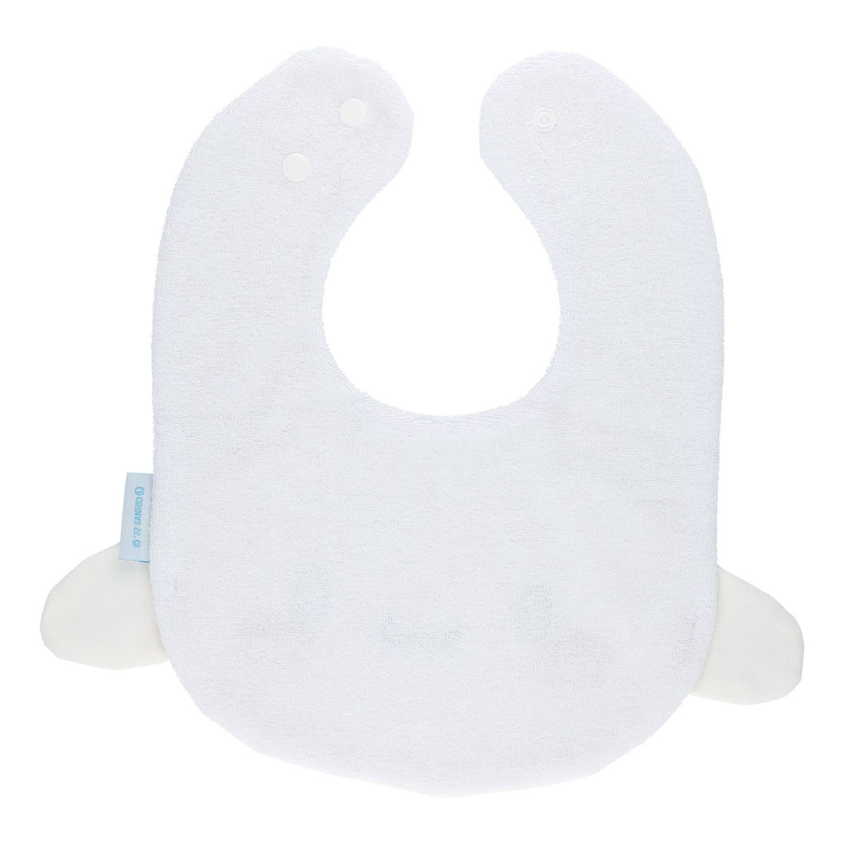キャラクターをモチーフにしたデザインのベビービブです。可愛いキャラクターが赤ちゃんにそっと寄り添い、よだれや食べこぼし、飲みこぼしから衣類を守ります。