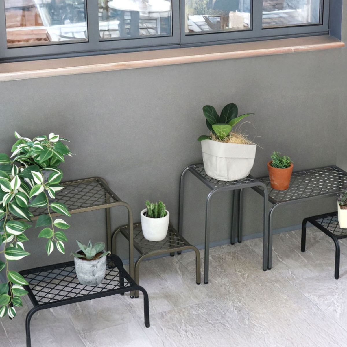異なるサイズを組み合わせれば、立体感のあるグリーンディスプレイも自在に。玄関やリビング、ショップ什器としてもおすすめです。無駄のない洗練されたデザインは、玄関・リビング・バルコニーなど場所を選ばず調和し、植物をまるでインテリアの一部のように引き立てます。