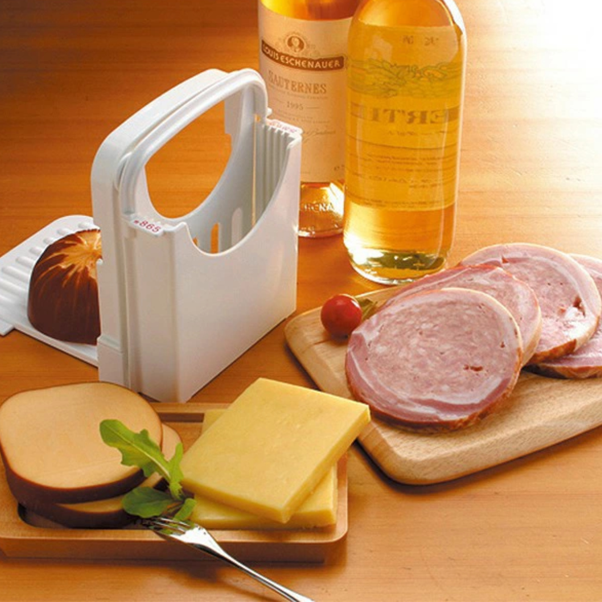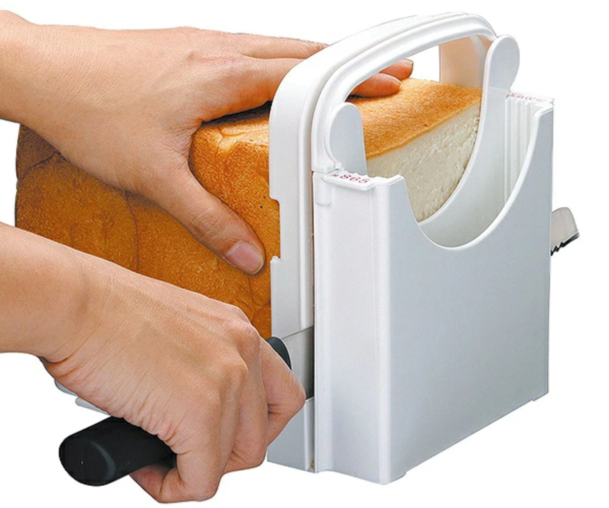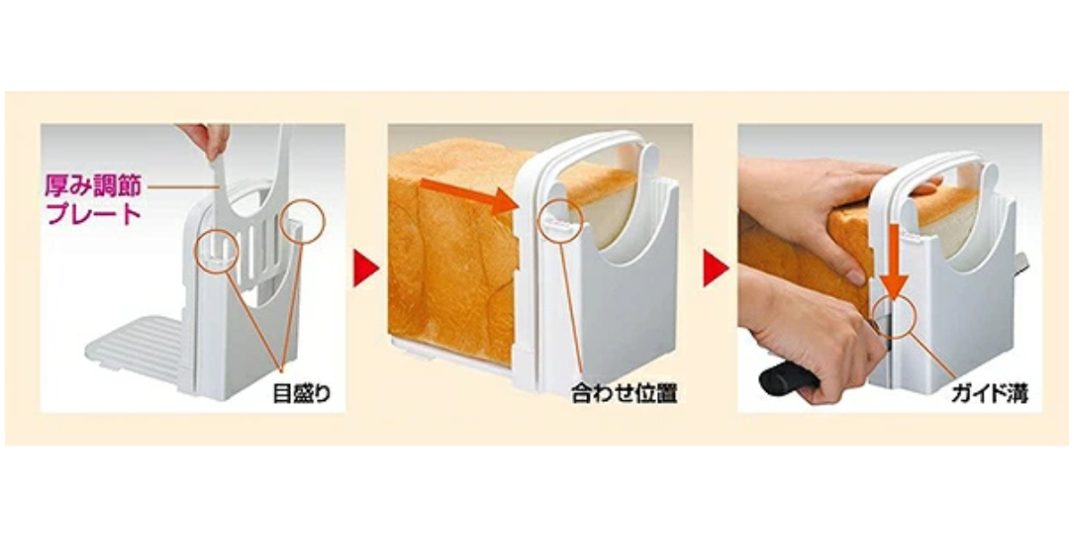 ご家庭で手軽に食パンをお好みの厚さにカットできる便利な「食パンカットガイド」。ガイドに沿って包丁を入れるだけで、誰でもまっすぐキレイにカットできます。