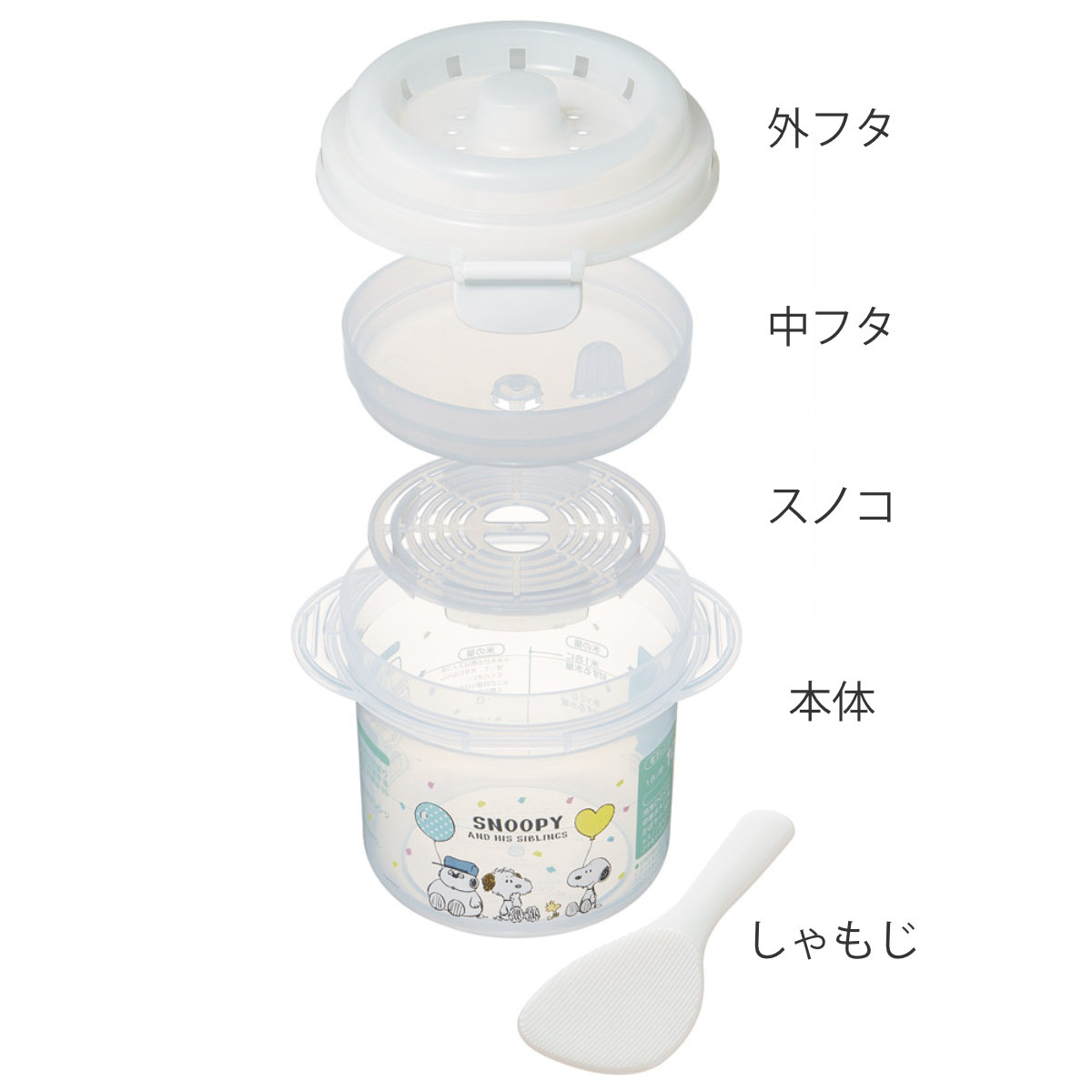 | パーツ別耐熱温度 | 本体・中フタ・外フタ・スノコ・しゃもじ:-20~140度、止め具:-20~80度 |