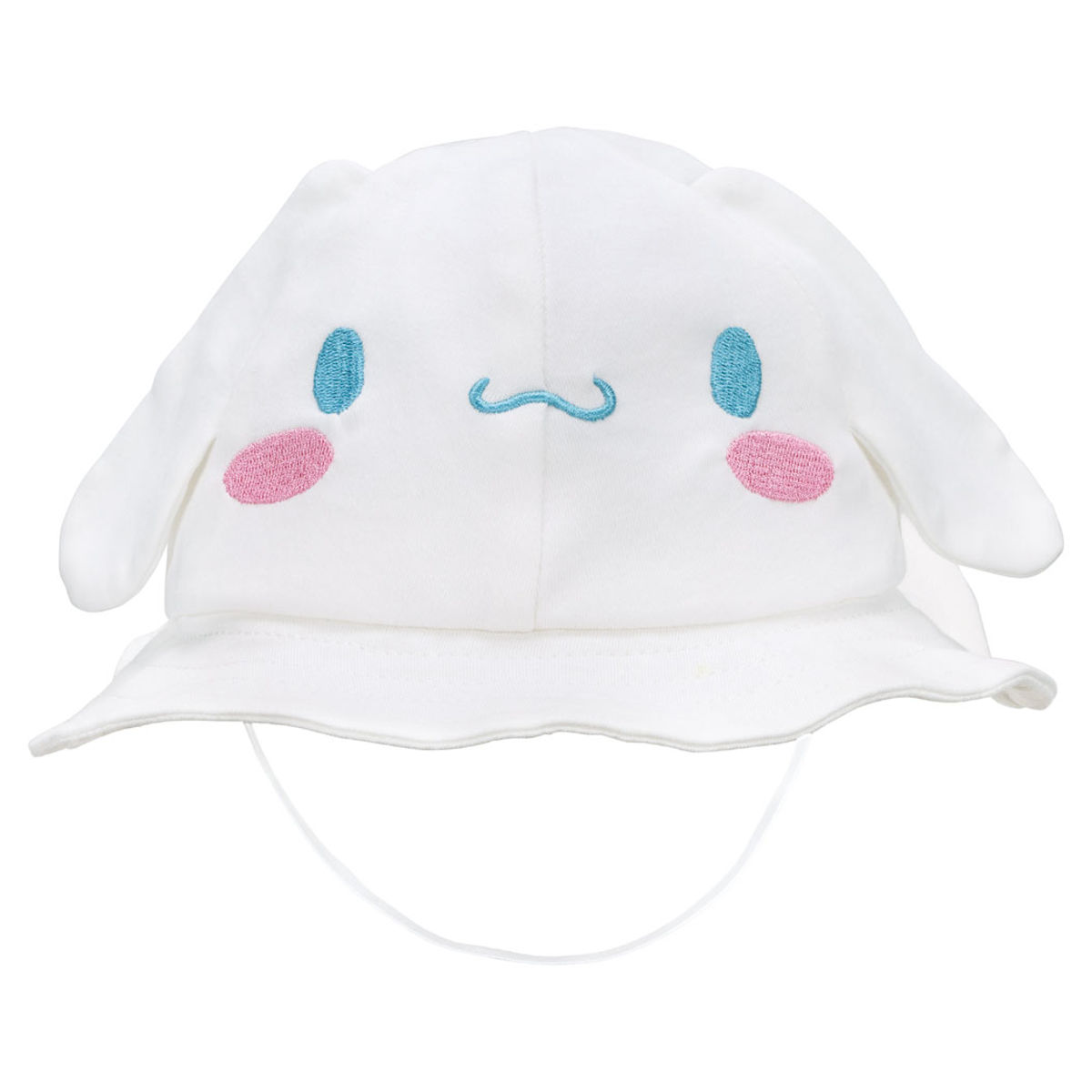 キャラクターのダイカットが可愛いベビーハットです。お出かけ時にシナモロールが赤ちゃんにそっと寄り添います。敏感な赤ちゃんの肌にも安心な綿100%素材です。