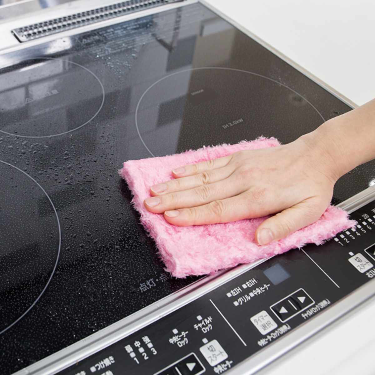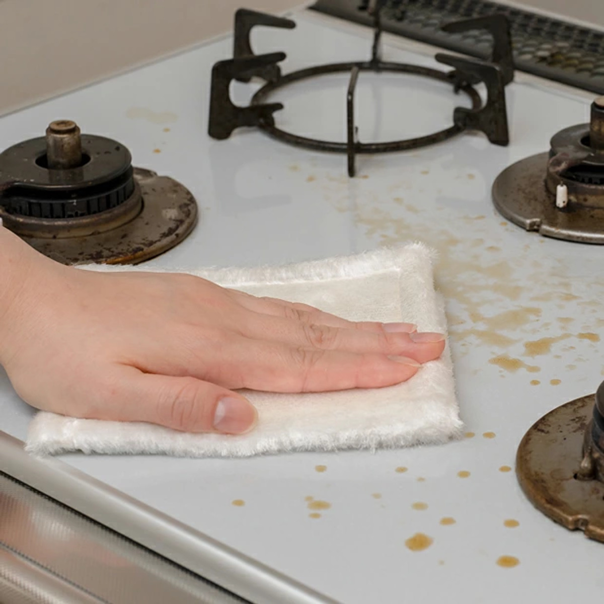 軽い油汚れなら洗剤なしで拭き取れる汚れにくい「ふしぎなクロス」です。 拭き取った汚れも水洗いでサッと落ち、いつでも清潔に使えます。