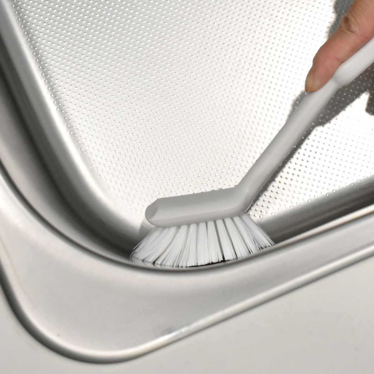 斜めに植毛されたブラシはシンクのカーブに沿って広がり、曲面も楽に洗えます。