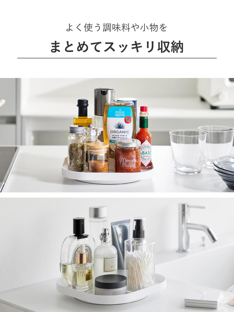 出し入れしやすく使いやすい回転式収納トレーです。トレーごと運べるので使う時も片付ける時もスムーズ。