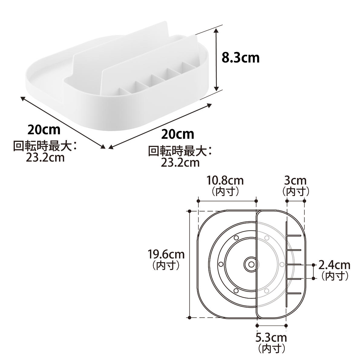 | サイズ | 約 幅20×奥行20×高さ8.3(cm) 回転時最大:幅23.2×奥行23.2cm |