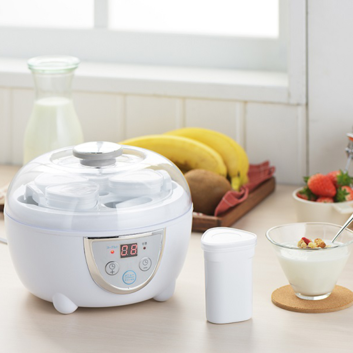ヨーグルトや甘酒が自宅で簡単に作れるメーカーです。材料を混ぜてスイッチを入れたら、約8~10時間で完成。夜にセットすれば翌朝には食べられ、健康のためにも摂取したい発酵食品を、毎日の生活に手軽に取り入れられます。