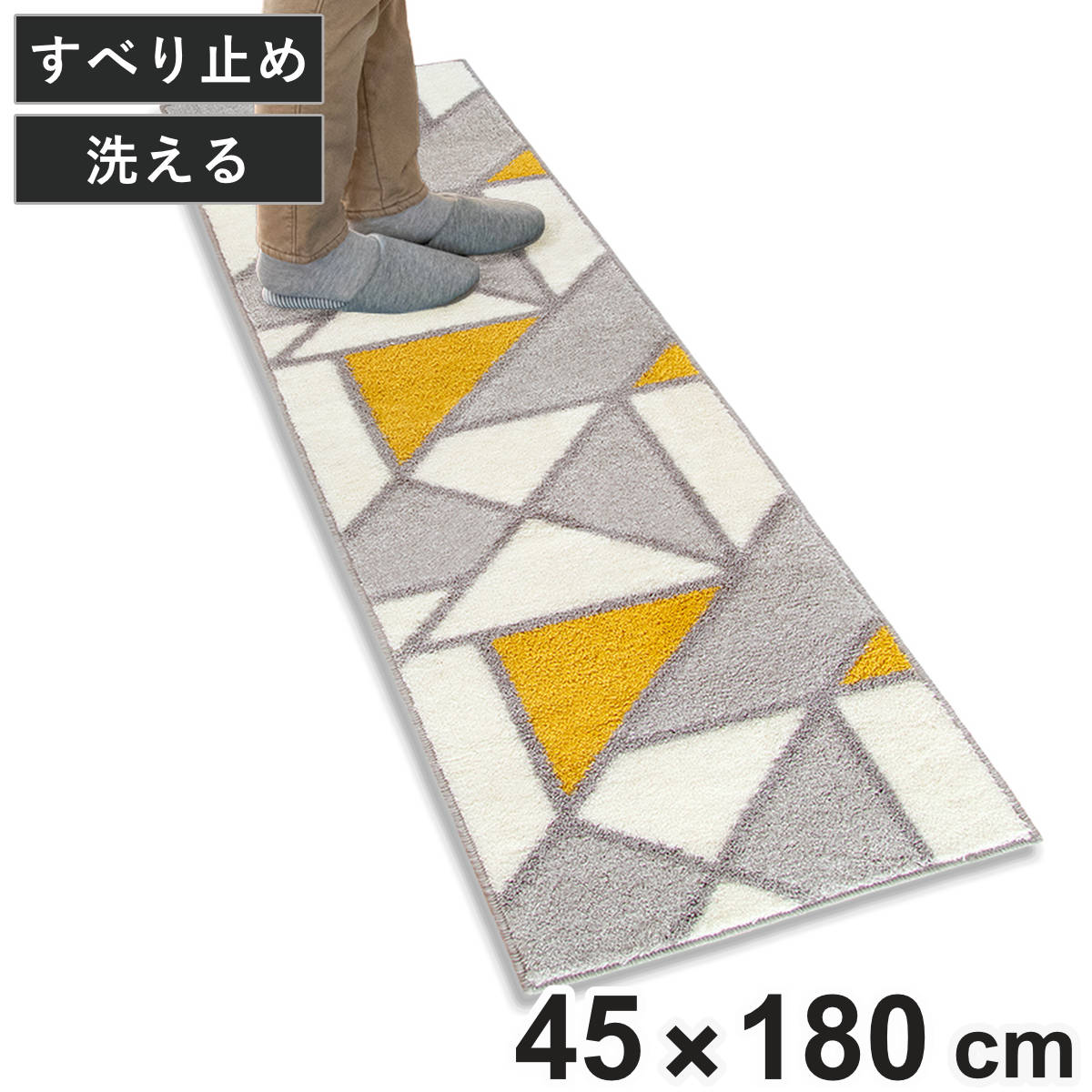 キッチンのシンク前やコンロ前にぴったりなサイズ感です。一人暮らしのコンパクトなキッチンにもおすすめです。足元全体をしっかりカバーしながら、場所を取りません。キッチンだけでなく、洗面所や玄関でも活躍します。