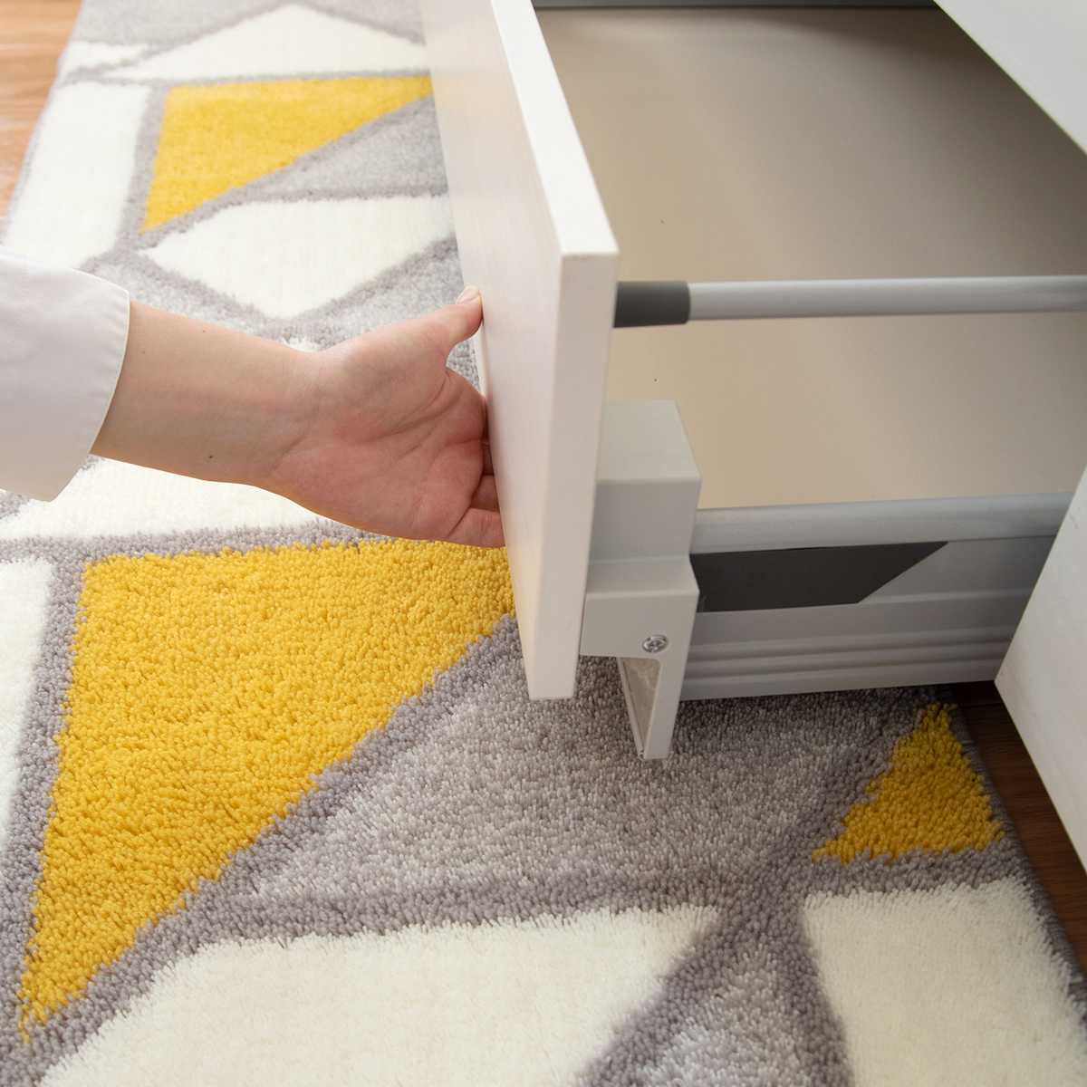マットの厚みは12mmと薄手なので、扉や引き出しの開閉の邪魔になりにくいのも嬉しいポイント。掃除機をかける時もスムーズです。