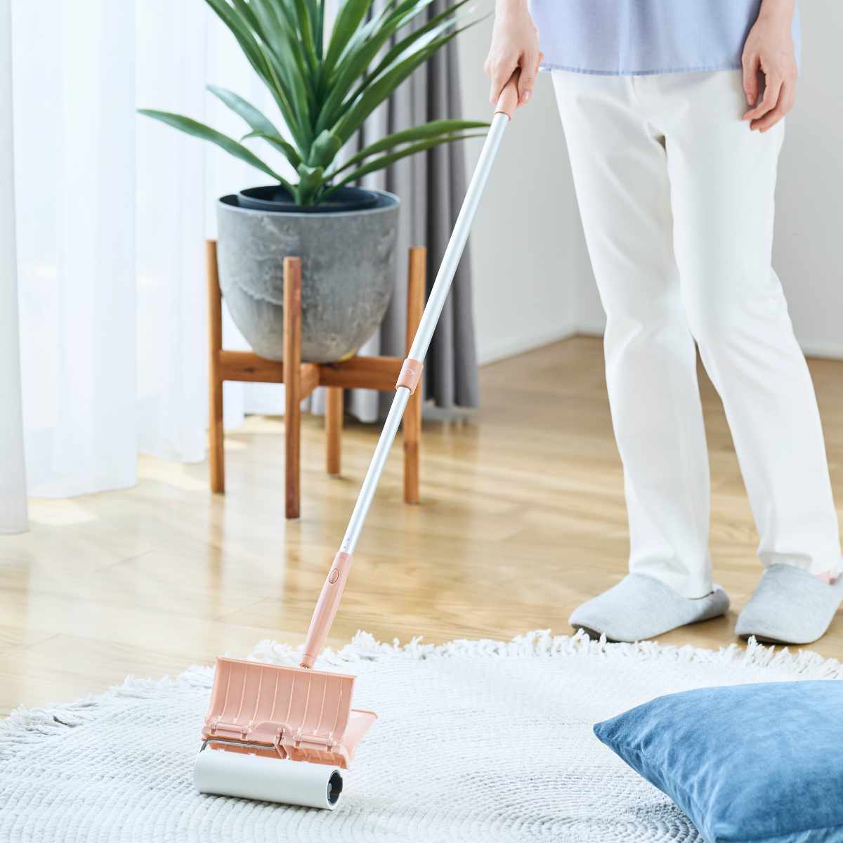 洋服や絨毯、ソファも片手でサッと掃除できる一体型粘着ローラーです。カバーを開けるだけで使用でき、ローラーをケースから取り出す手間もなく手軽です。
