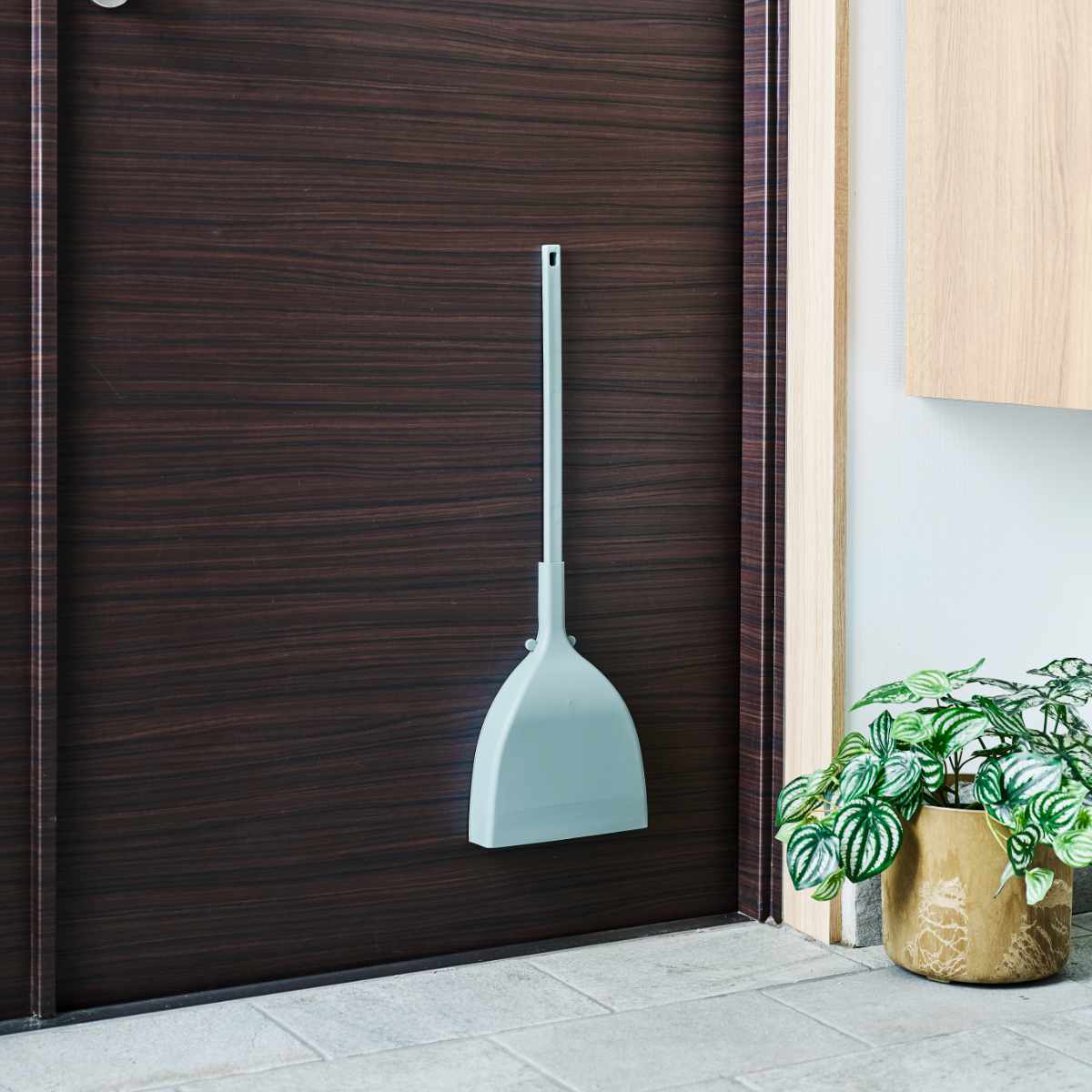 玄関ドアや洗濯機、冷蔵庫などの金属壁に貼り付けられるほうき&ちりとりです。思い立ったときにパッと手に取り、手軽に掃除できます。