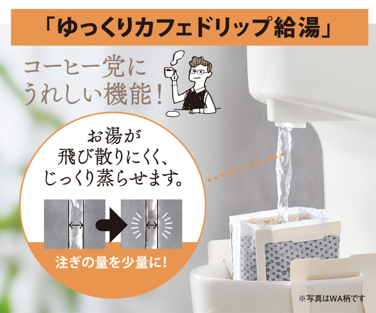 「ゆっくりカフェドリップ給湯」は、少量でゆっくり注げるのでお湯が飛び散りにくく、じっくり蒸らせます。コーヒー党にうれしい機能です。