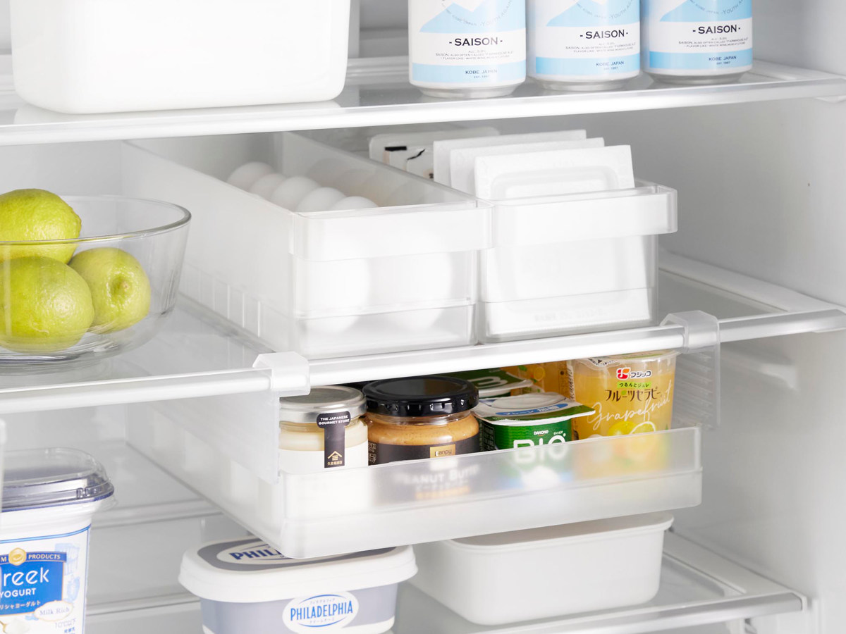 棚下収納ラックシリーズを並べて設置すると無駄な空間がなくなり、冷蔵庫の中の収納力がアップします。収納スペースを細かく分けることで食材の管理もしやすくなります。