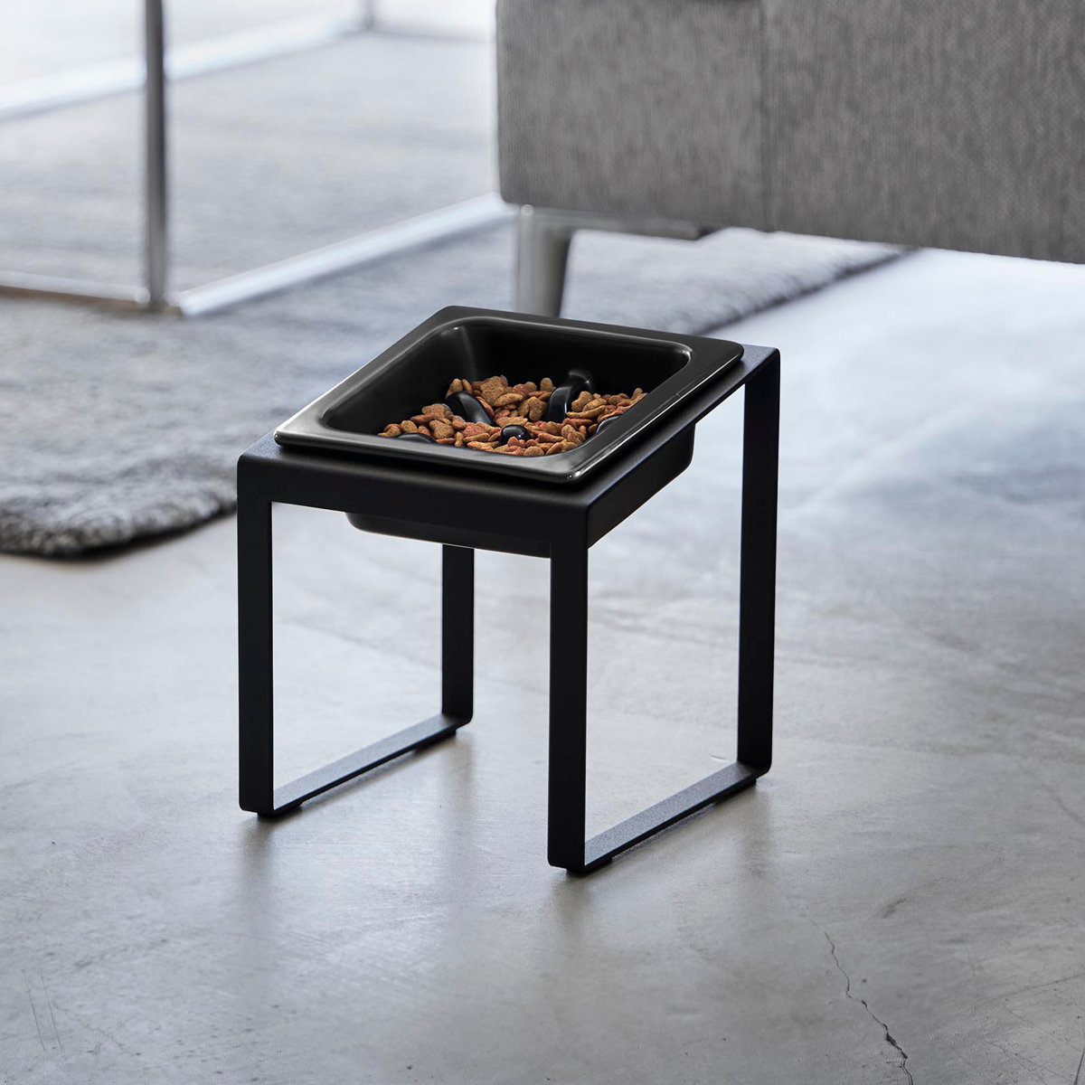 ボウルの位置が高く、手前に傾いた設計で食べやすいペットフードボウルスタンドです。ペットの腰や首に負担をかけずに食べ残しなどを防止できます。