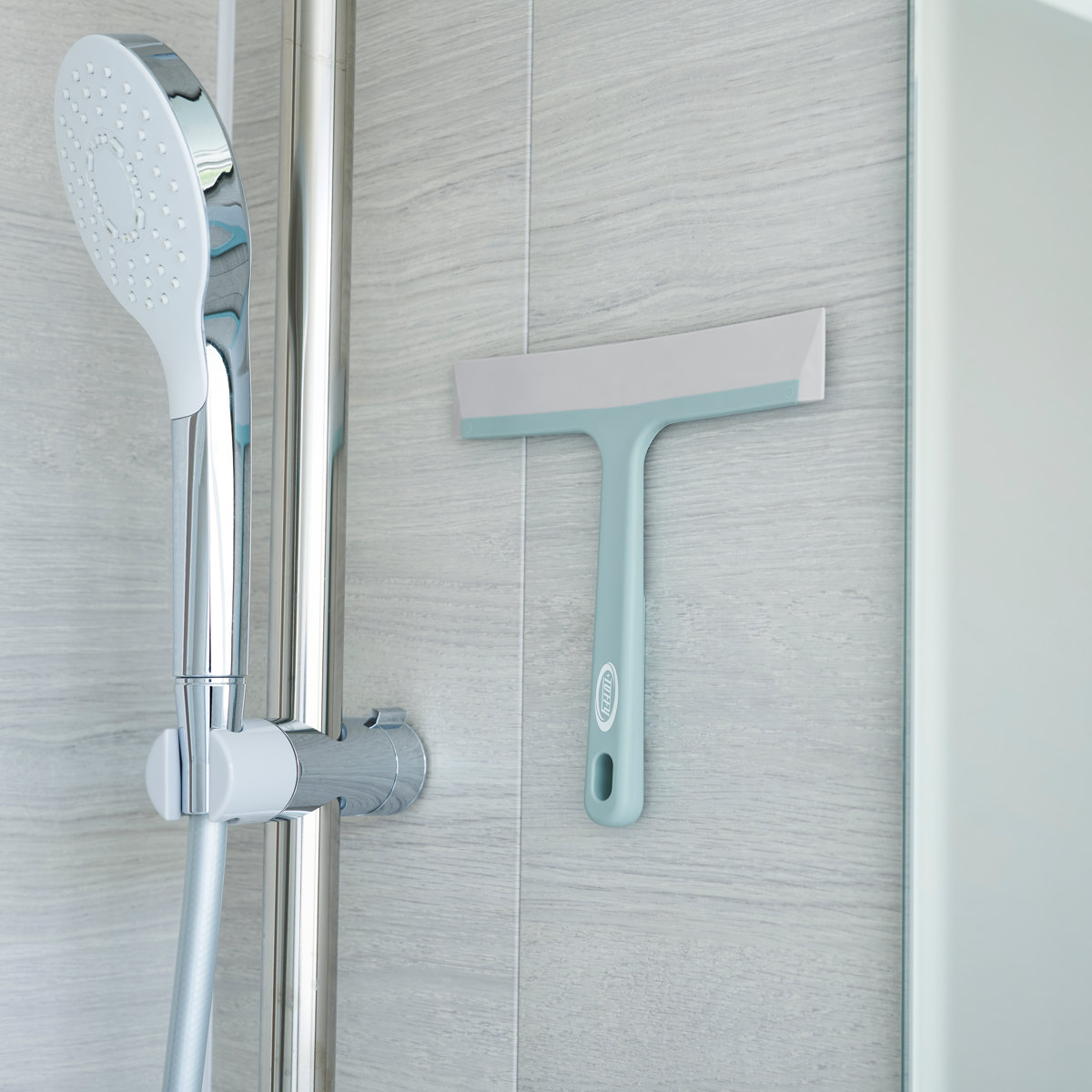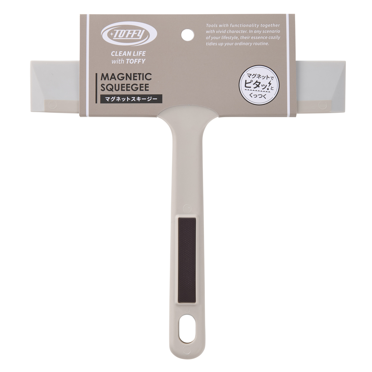 柄にマグネットが付いているため、壁面に浮かせてすっきりと収納できます。ヘッド部分がかさばらず省スペースで収まり、水切り後は壁からわずかに浮いて乾きやすいため、衛生的にお使いいただけます。