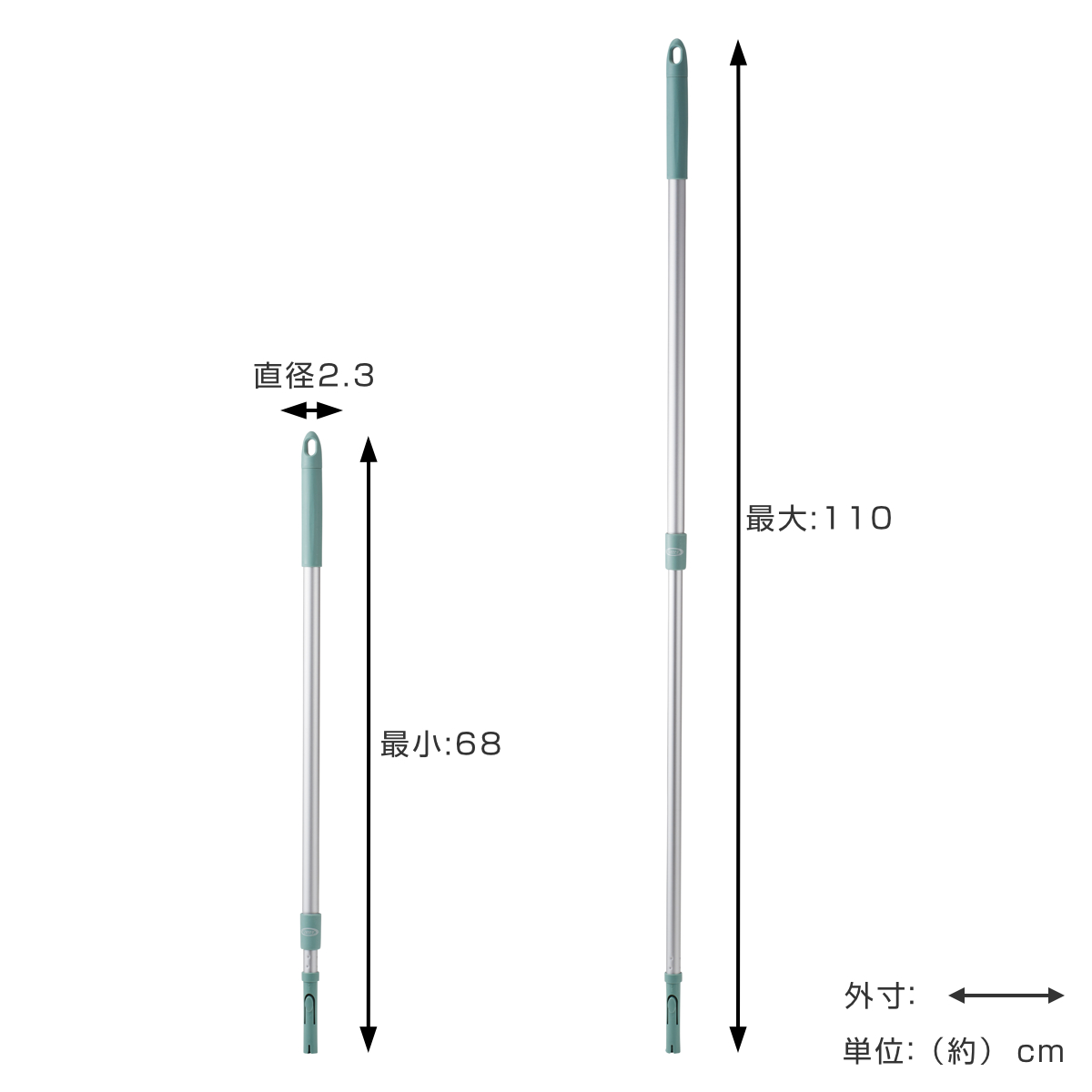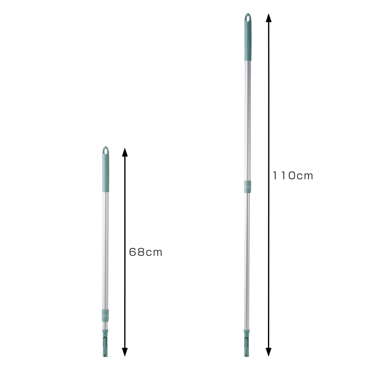 最長110cmまで無段階で伸縮できるため、使う場所に合わせてちょうど良い長さでお掃除できます。軽くて丈夫なアルミ製のため、腕への負担も少なく、快適に作業を進められます。