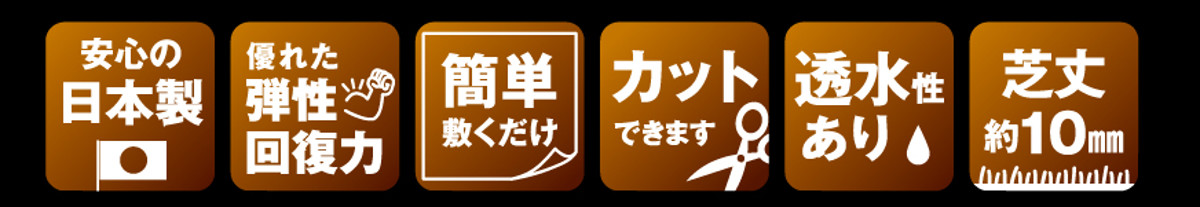 ●芝丈10mmのショートパイルで、へたりにくく型崩れしにくい仕様です。