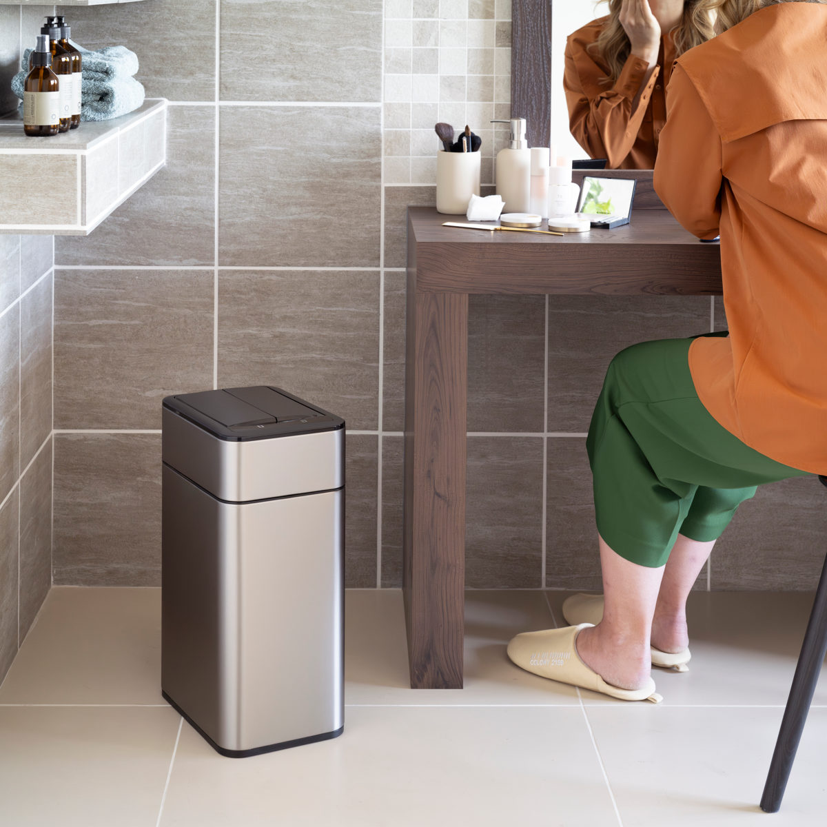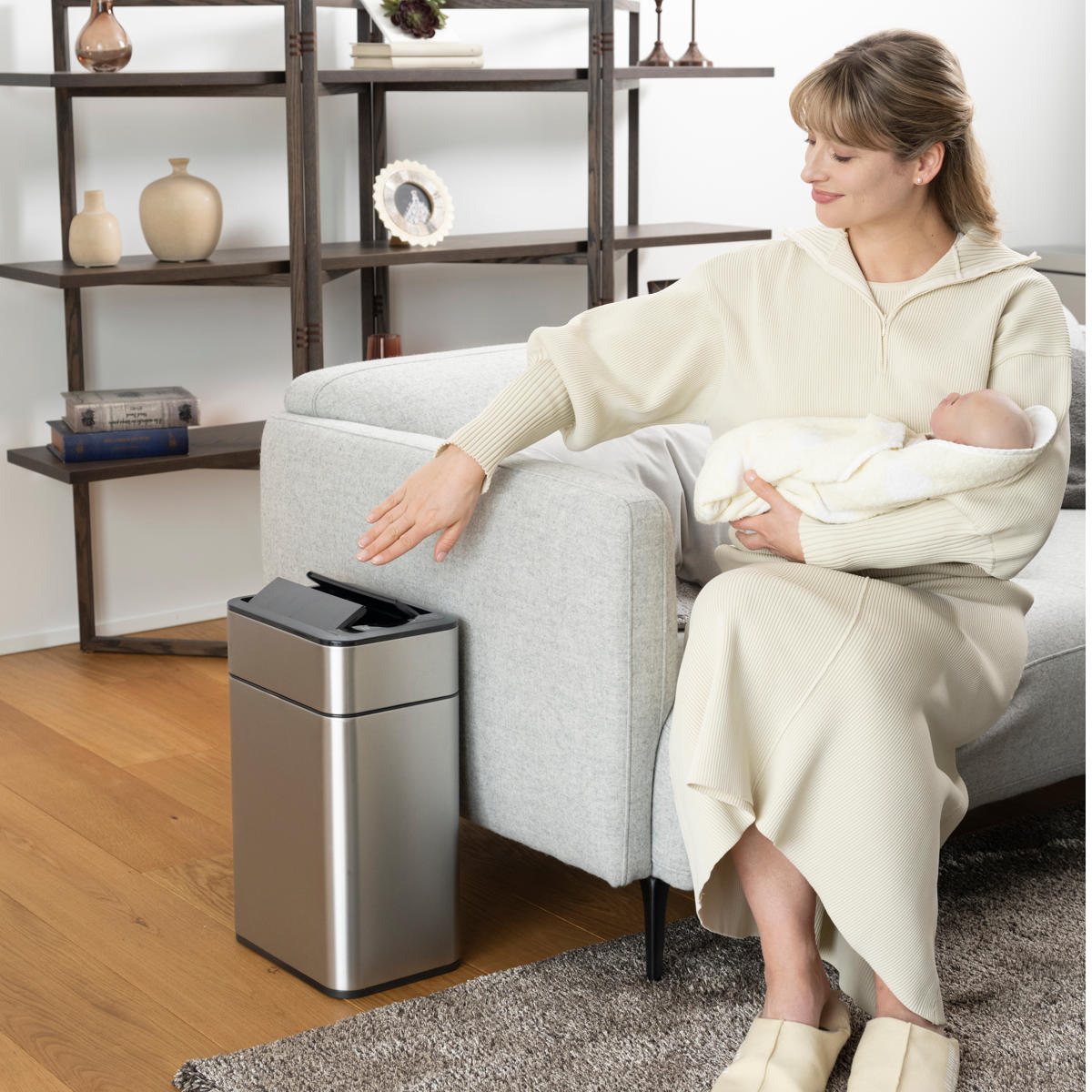 直接触れなくてもセンサーでふたが自動開閉するゴミ箱です。 高精度赤外線センサーによるハンズフリー操作で、スムーズで衛生的な開閉を実現します。ふたの開閉音はわずか36db(郊外の深夜レベル)の静けさです。