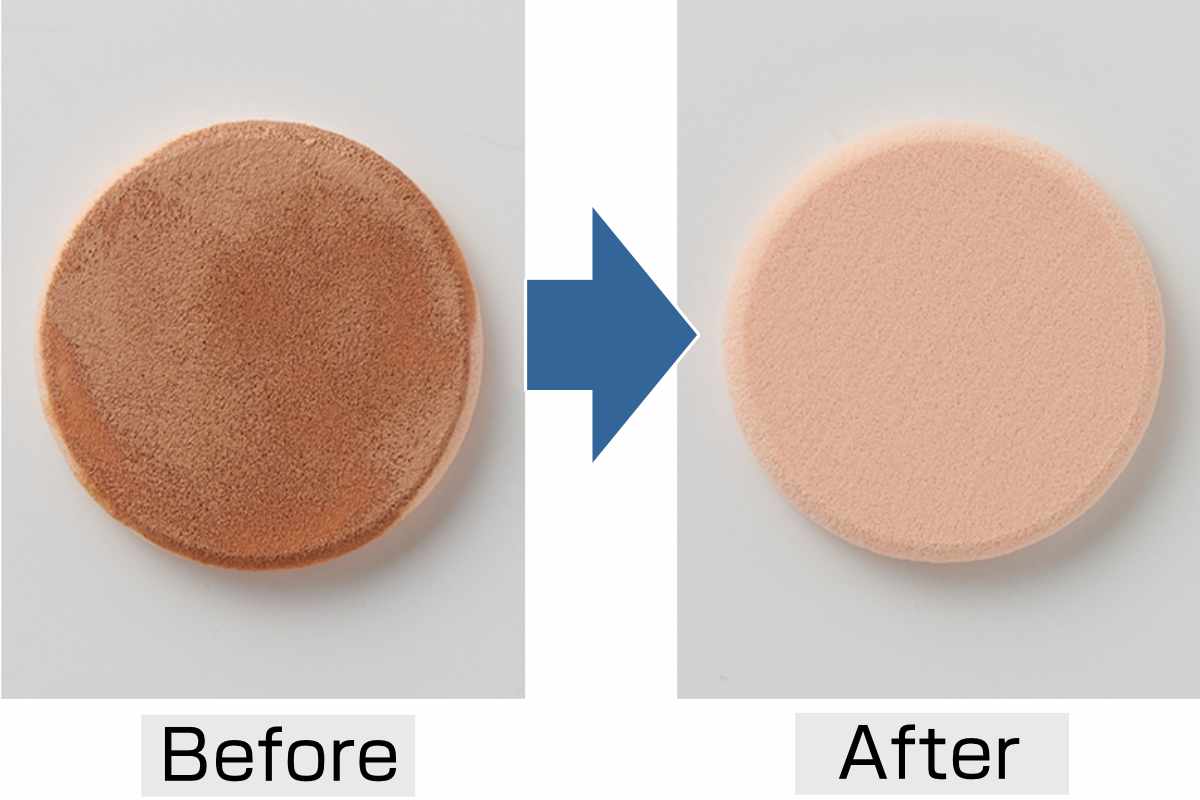 パウダー・リキッドどちらのファンデーション汚れにも対応します。手間なく短時間で洗浄できます。