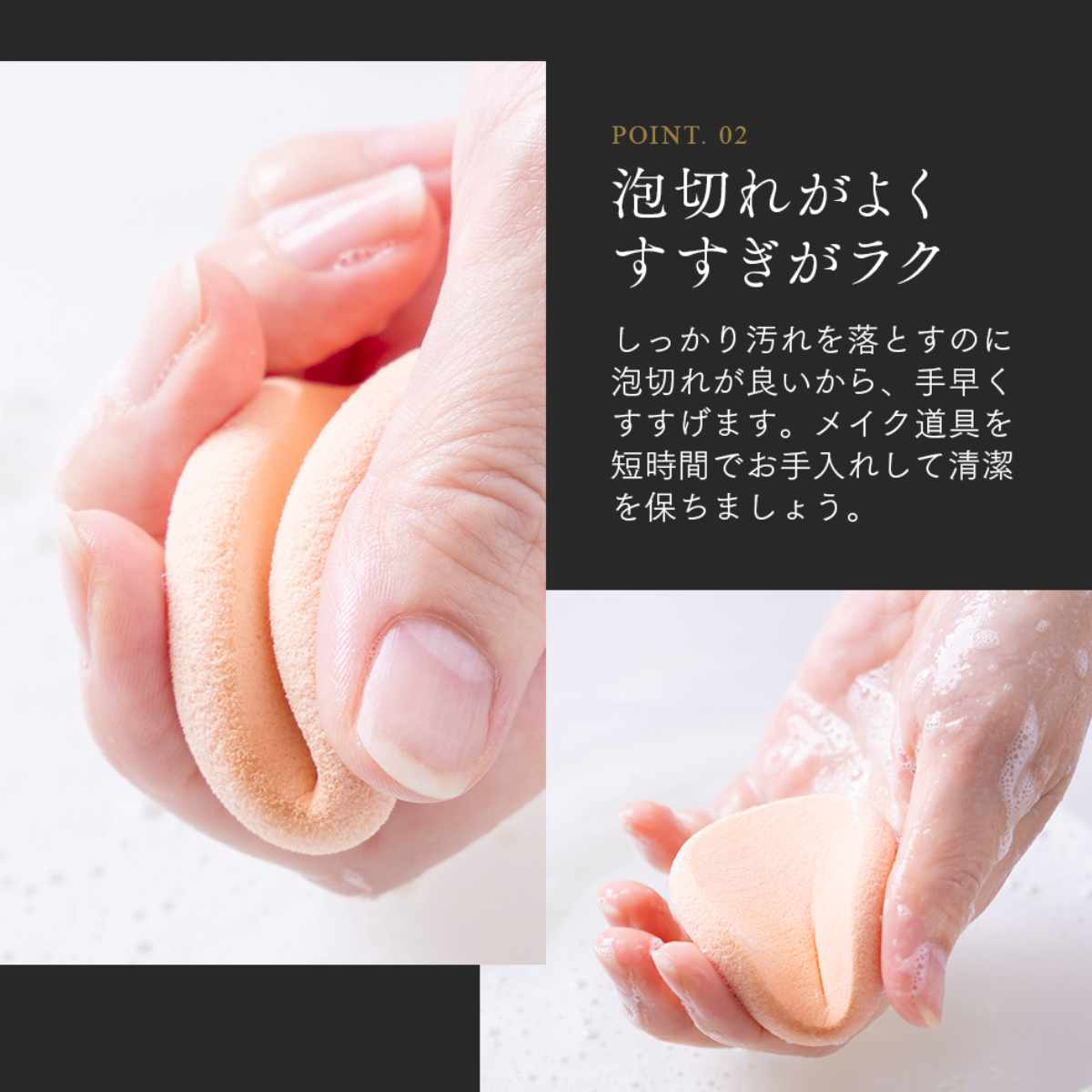 さまざまな形やサイズの化粧パフ・スポンジにお使いいただけます。毎日使うメイク道具を清潔に保てるので、肌への負担も少なく快適に使い続けられます。
