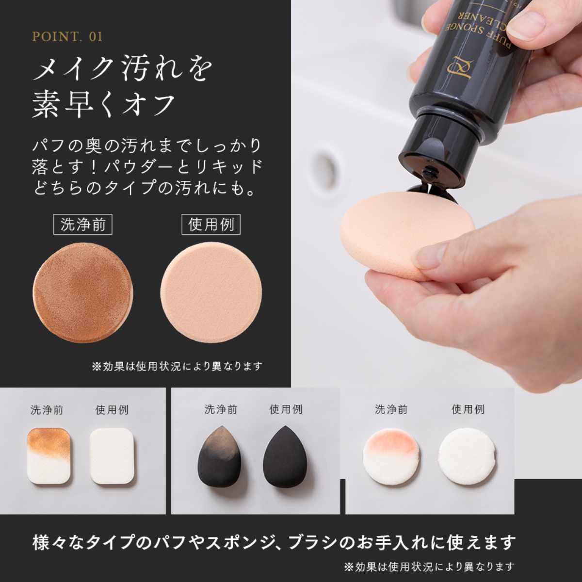 クリーニングの現場で使われている化粧パフ・スポンジの汚れを落とすクリーナーです。奥まで入り込んだ汚れを落とし、雑菌の繁殖を防いでいつでも快適にお使いいただけます。