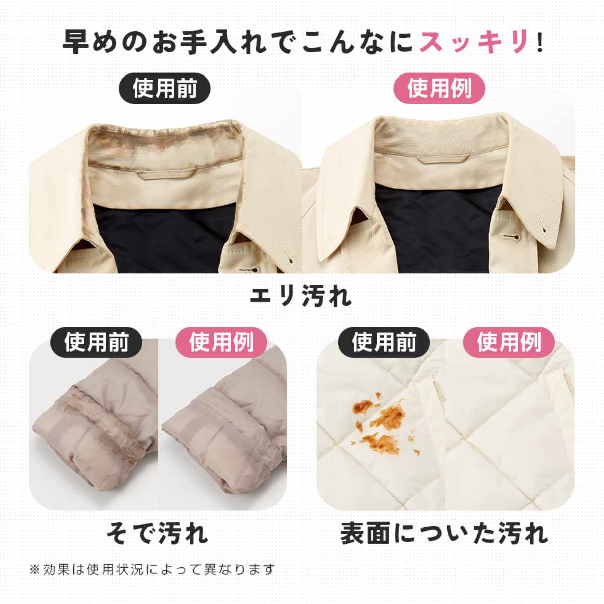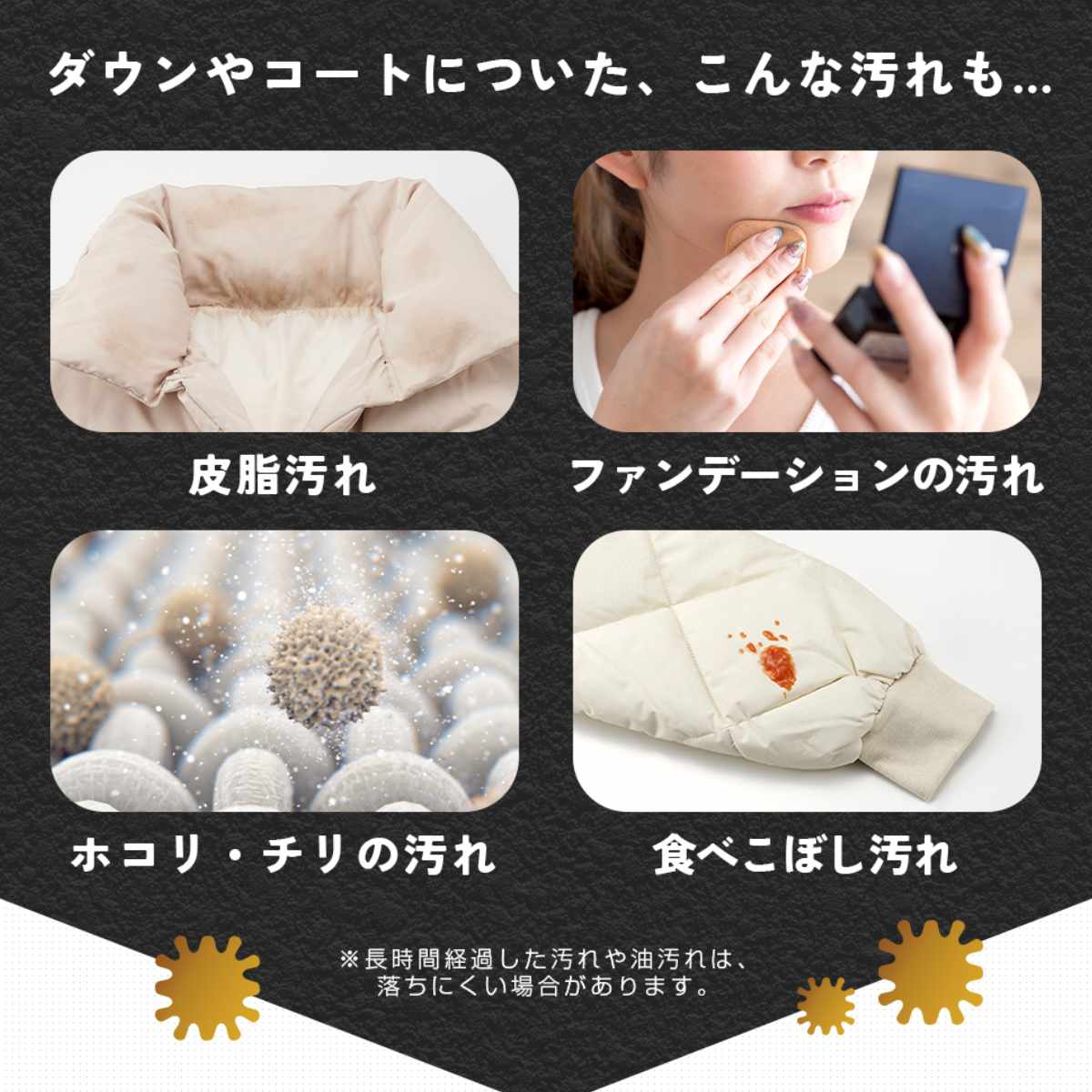 ●メイク汚れ・食べこぼし・ホコリまでしっかり落とし、衣類や小物をいつでも清潔に保ちます。
