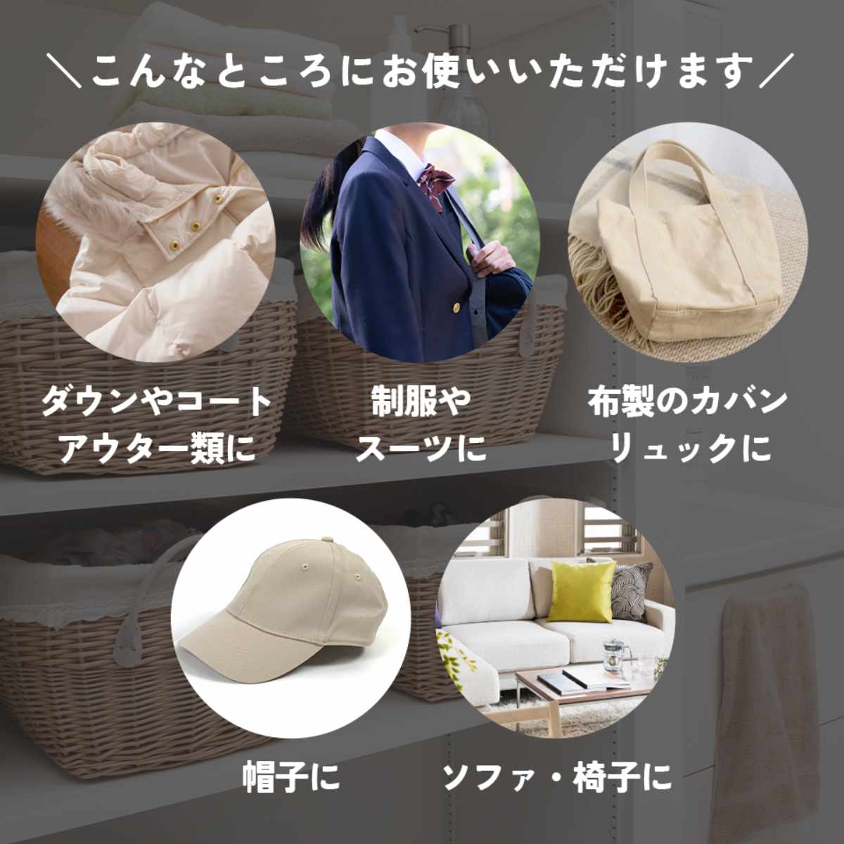 ダウンコートはもちろんスーツやカバン・帽子・家具などさまざまなアイテムのお手入れにお使いいただけます。